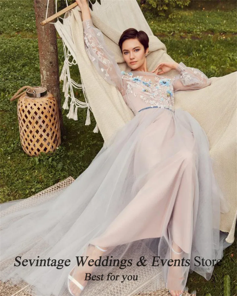 Шифоновые вечерние платья для выпускного Sevintage с длинными рукав...