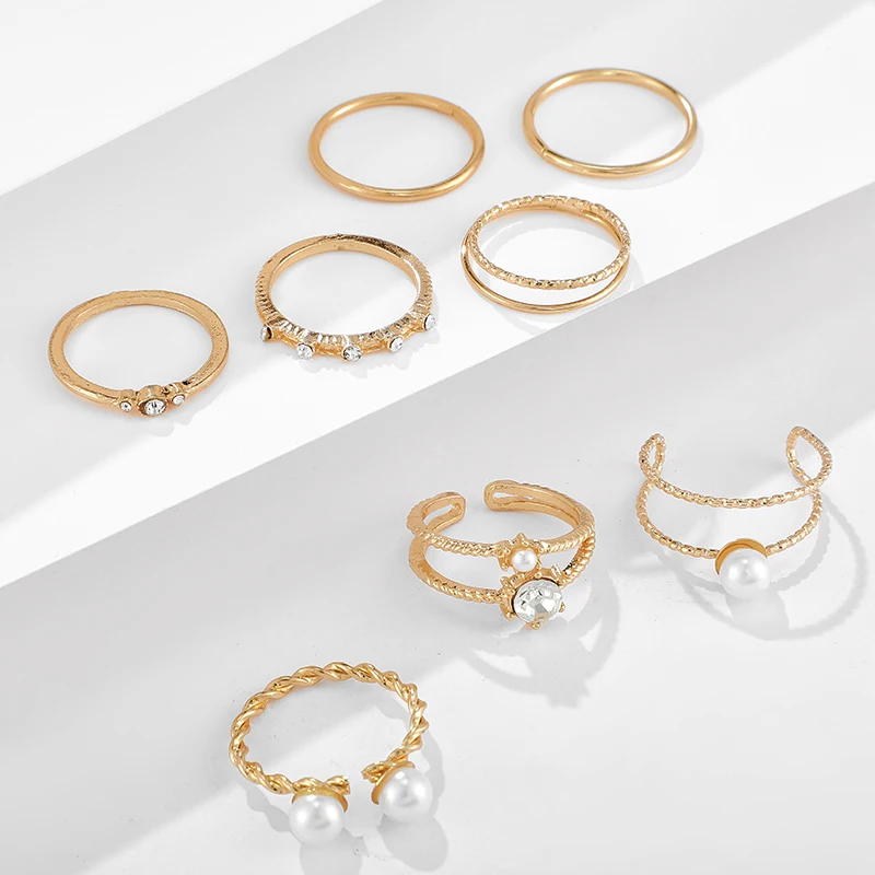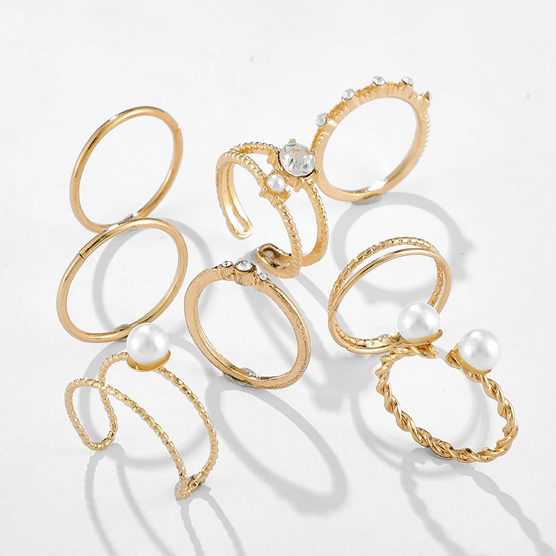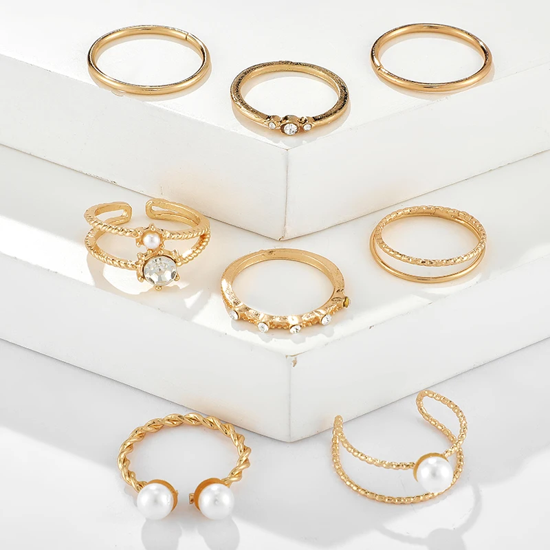 Набор Колец Tocona Boho 8 шт.компл., роскошные открытые кольца с жемчугом, модный прозрачный кристалл, камень, простая бижутерия, оптовая продажа 9016