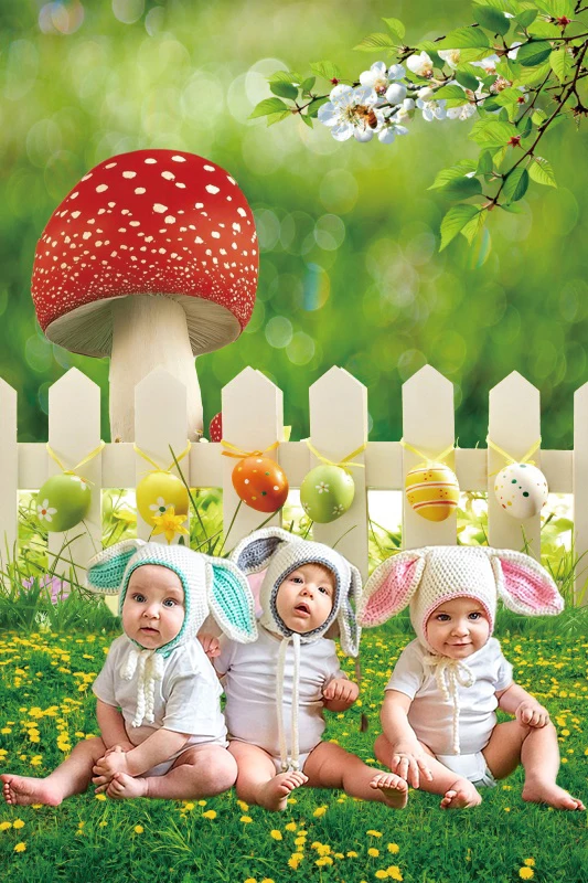 Фон для фотосъемки новорожденных с изображением весны Пасхи цветов яиц кролика луга
