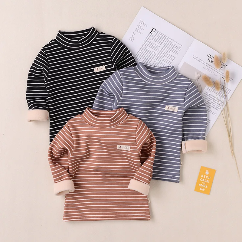 Термобелье для мальчиков и девочек, зимнее, с вельветовой подкладкой, в полоску