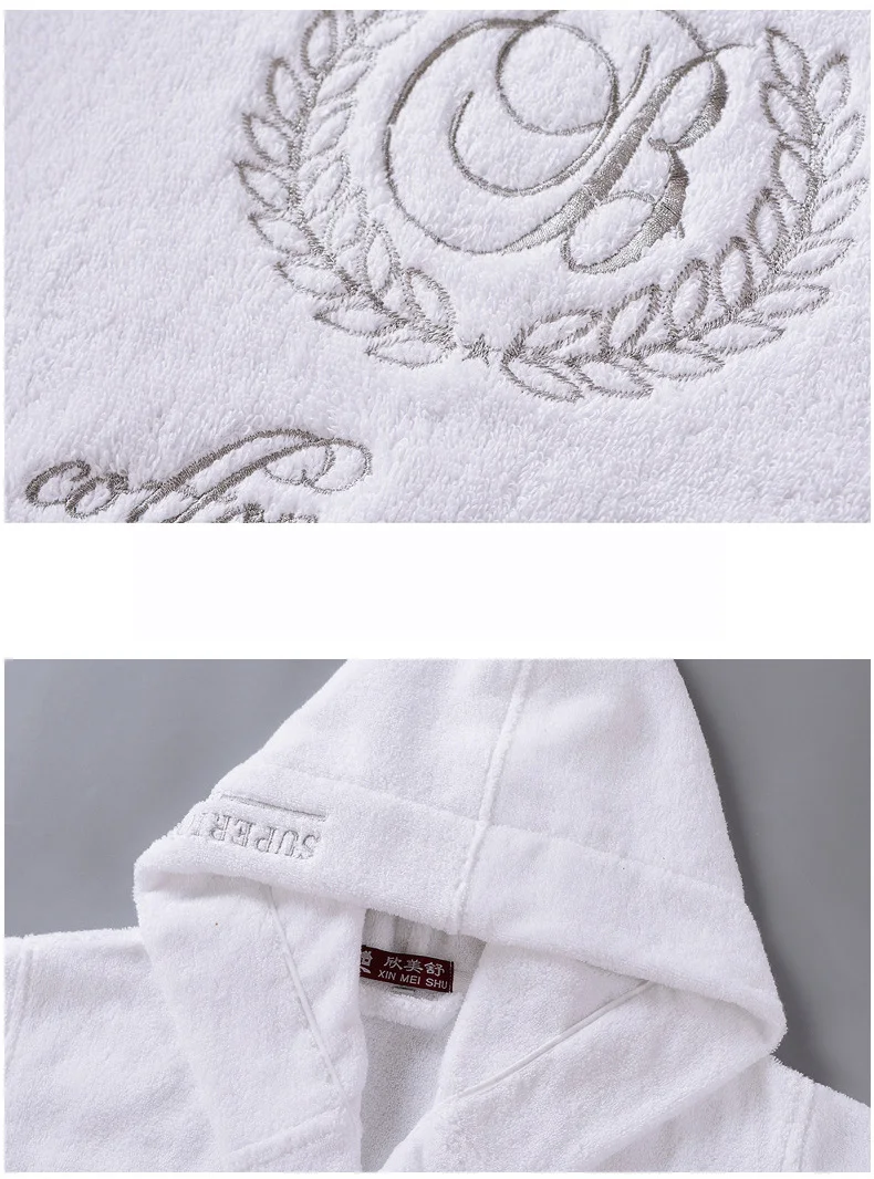 Халат Махровый с капюшоном, с вышивкой, для мужчин и женщин