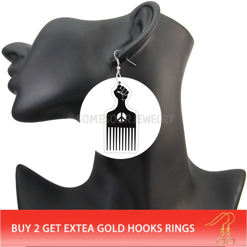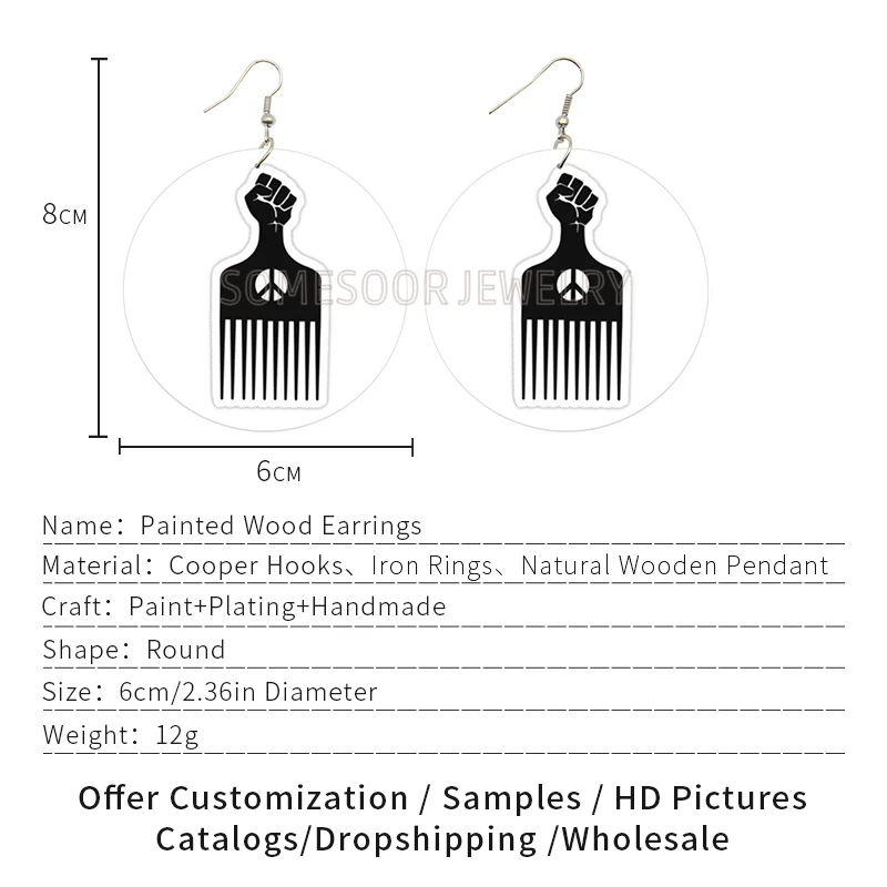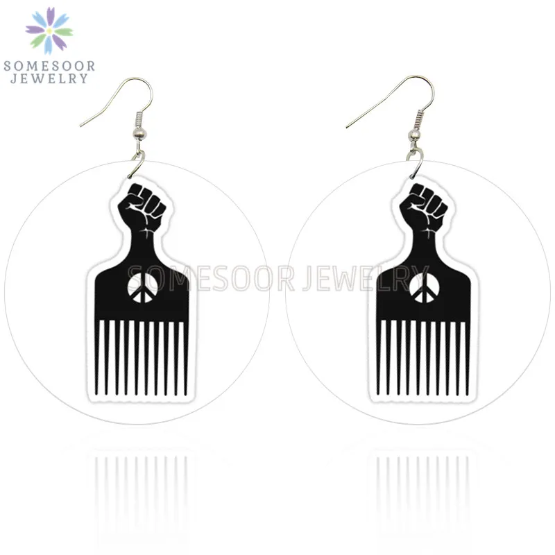 SOMESOOR Двусторонняя Расческа с Африканским принтом сила, кулак деревянные висячие серьги символ мира африканские деревянные Уши висячие ювелирные изделия для женщин в подарок