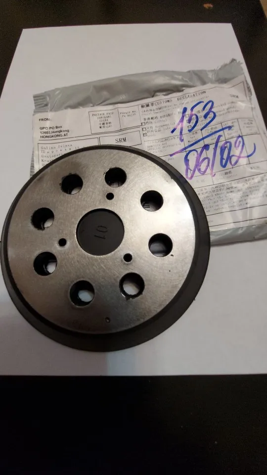Заказ пришёл быстро, упаковано в обычный полиэтиленовый пакет. Для моей Makita Bo5041 не подошёл из-за не совпадения внутреннего диаметра, 27,75 мм на makita и 25,7 здесь. Открыл спор, продавец сразу вернул деньги.