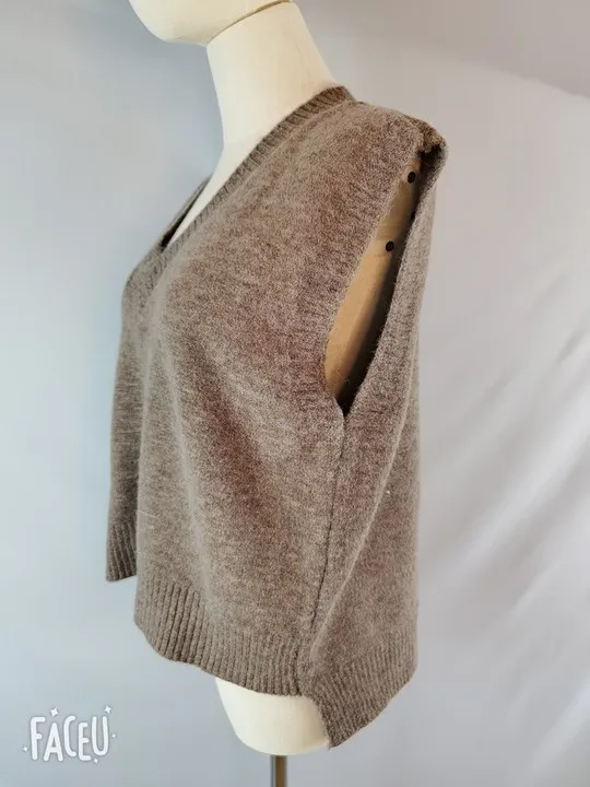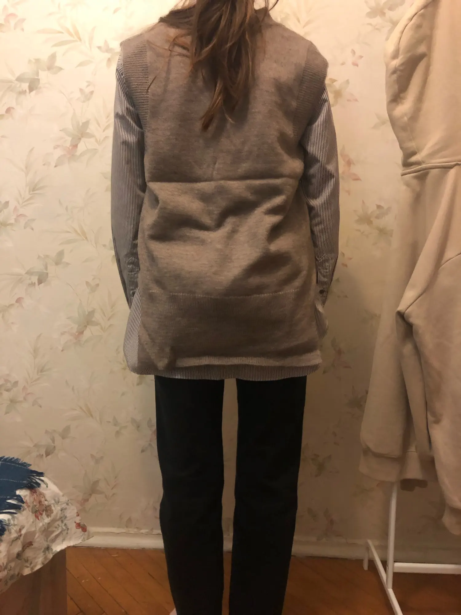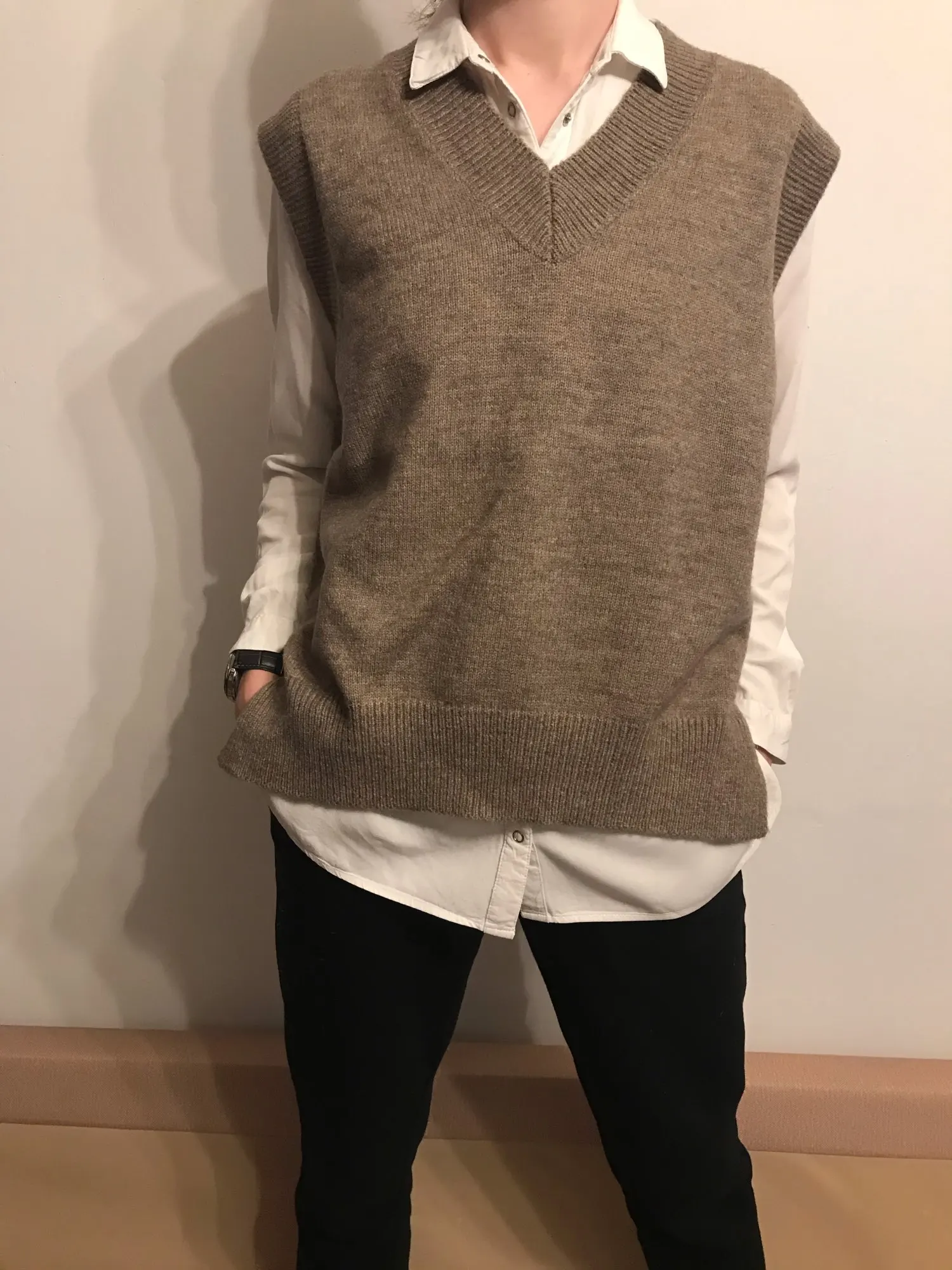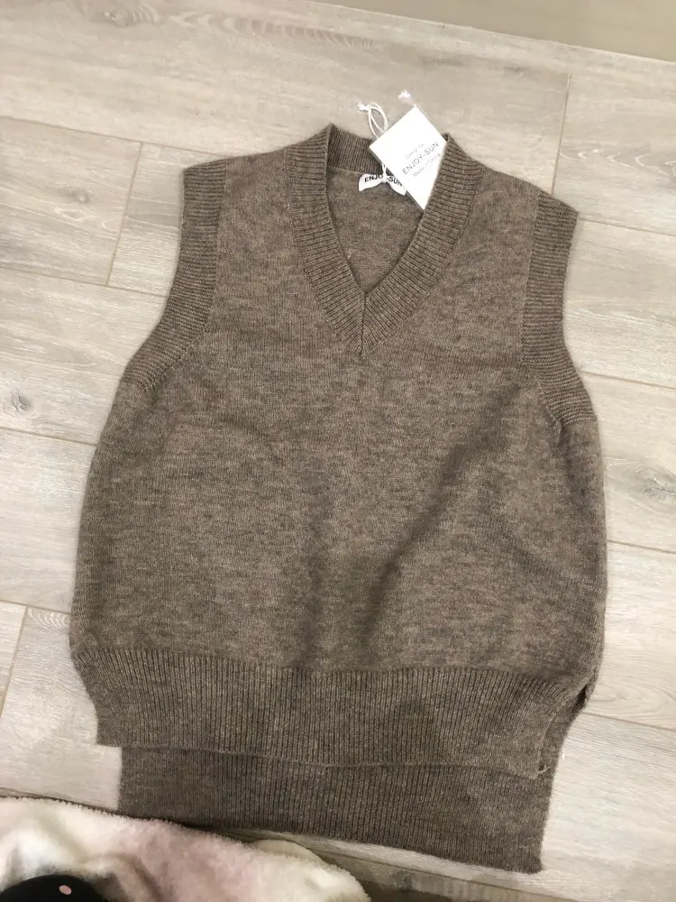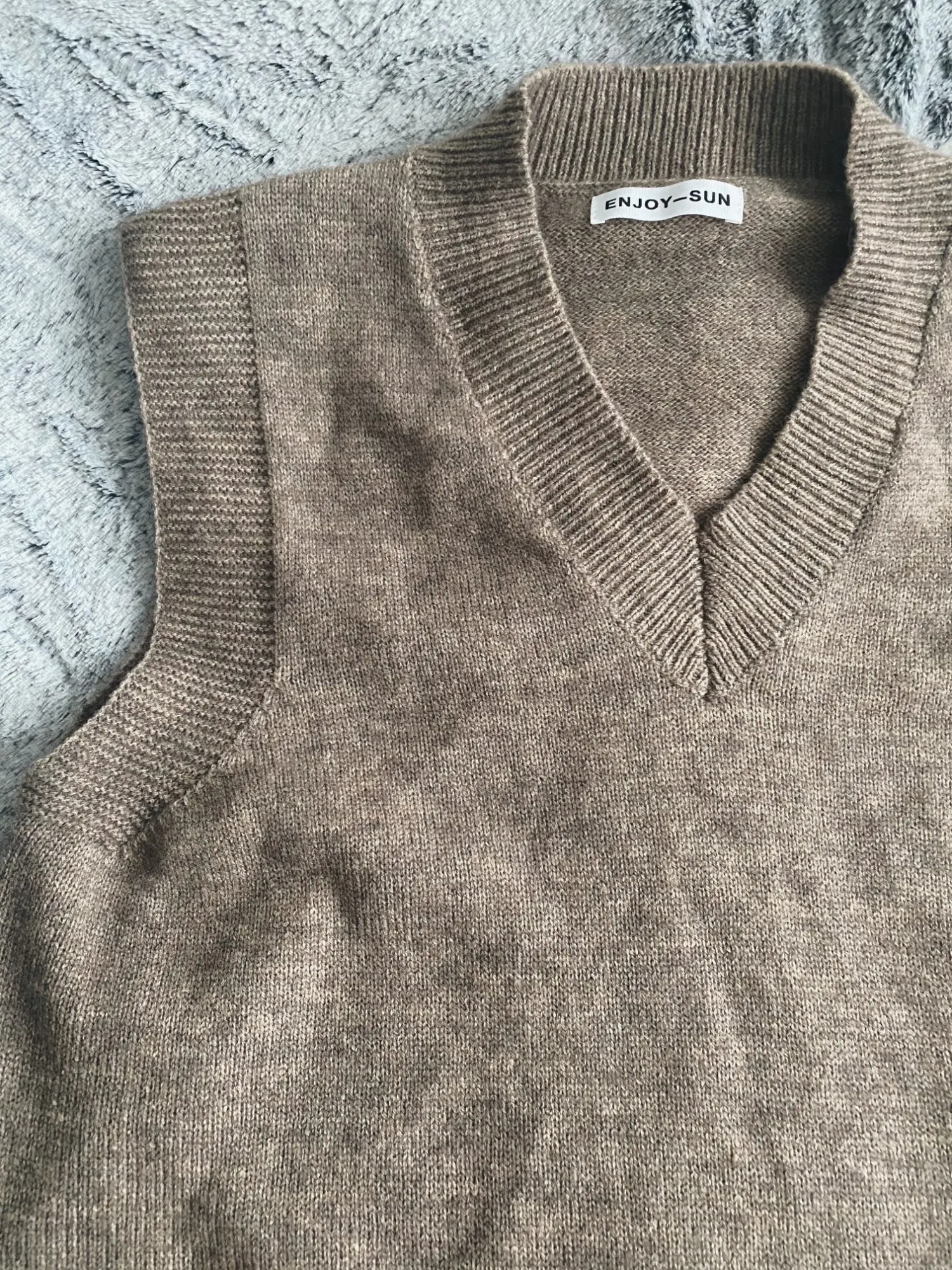 Хороший жилет, чувствуется присутствие шерсти. Есть немного торчащих ниток, но не критично.