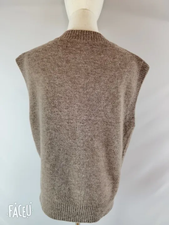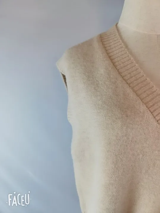 Супер-жилет! Качественно связан, ни одной нитки не торчит. Он безумно мягонький, такой приятный на ощупь. Не сильно толстый, но чувствуется, что теплый. В составе написано 35% шерсти, однозначно она есть по ощущениям. На 44 размер немного оверсайз. Довольна товаром! В подарок продавец положил купон на скидку.