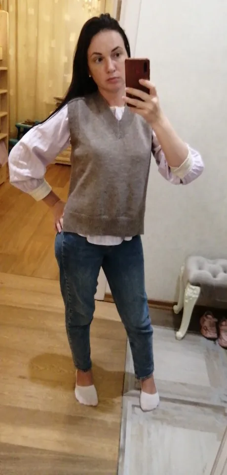 В общем и целом, жилетка неплохая)) мягкая, приятная к телу. Размер мне подошёл. Есть нюансы в виде торчащих ниток и пары затяжек, но не критично. Рекомендую жилетку к покупке:)