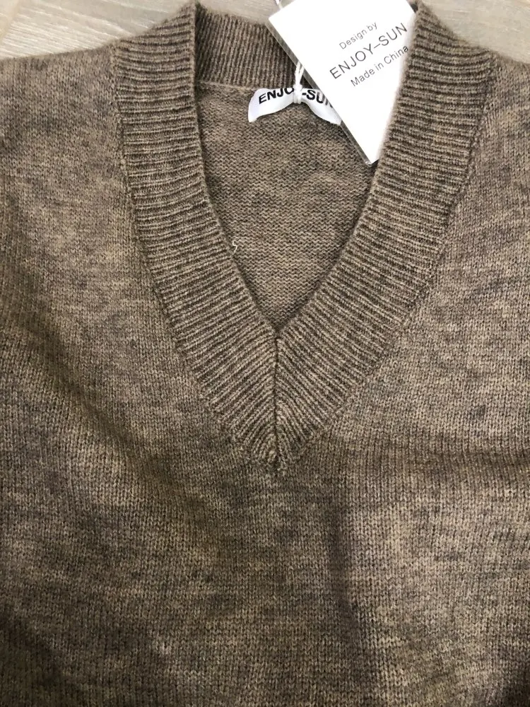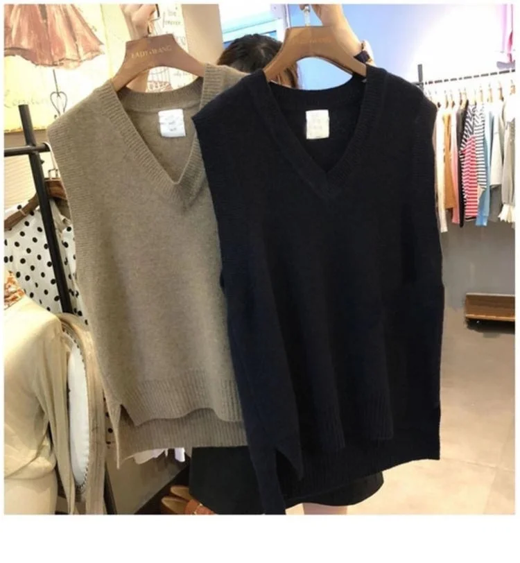 Осенний пуловер с v-образным вырезом для девочек, свитер на осень и зиму, Короткие вязаные женские свитера, жилет без рукавов, теплый свитер, Повседневный, большой размер