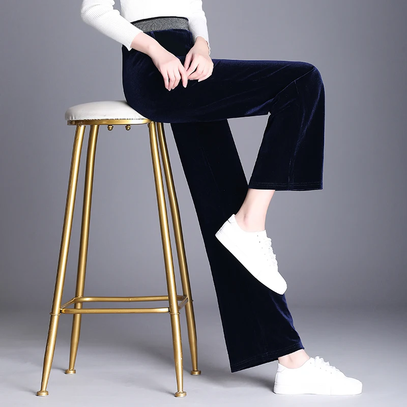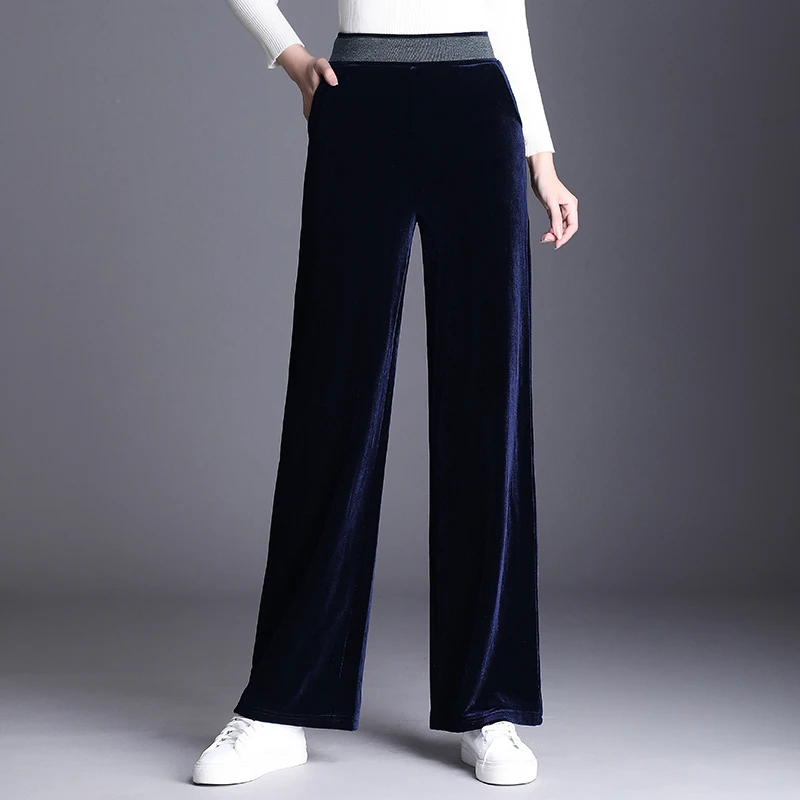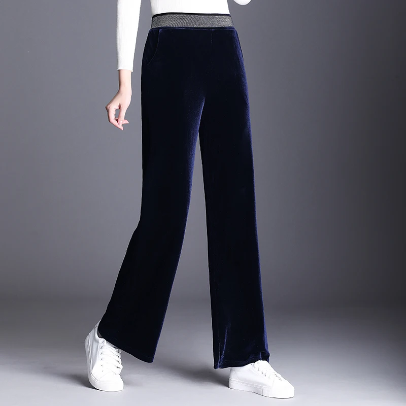 Женские брюки с высокой талией, осенне-зимние теплые эластичные свободные широкие брюки, винтажные повседневные женские бархатные брюки размера плюс 5XL 6XL