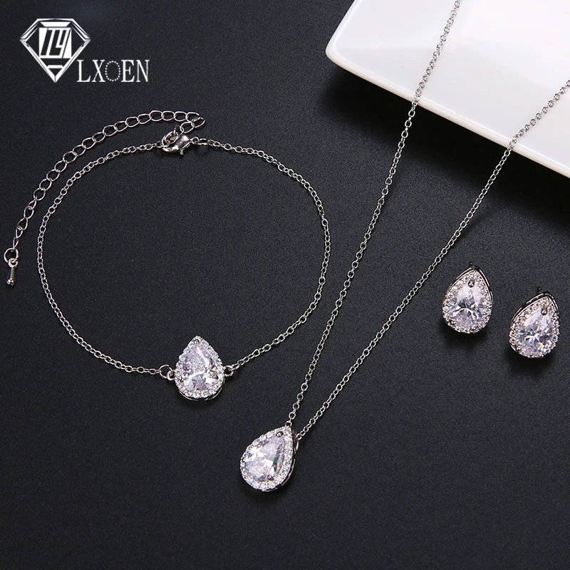 Комплект свадебных ювелирных изделий для женщин, ожерелье, браслет и серьги из трех предметов