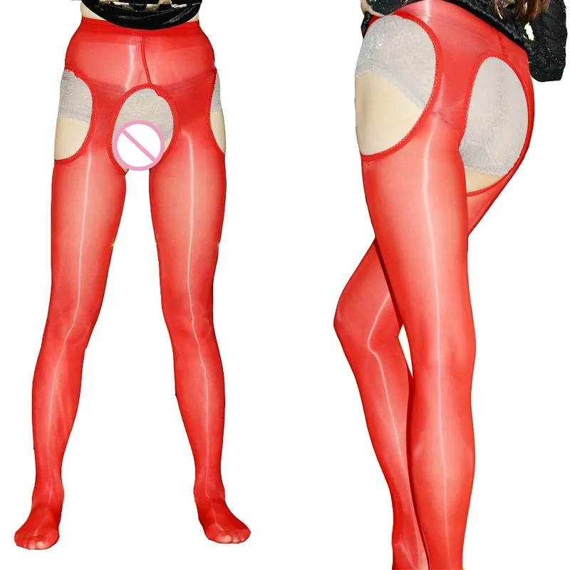 Лидер продаж, пикантные блестящие прозрачные колготки с открытой промежностью, женские блестящие длинные колготки, нижнее белье из нейлона без промежности