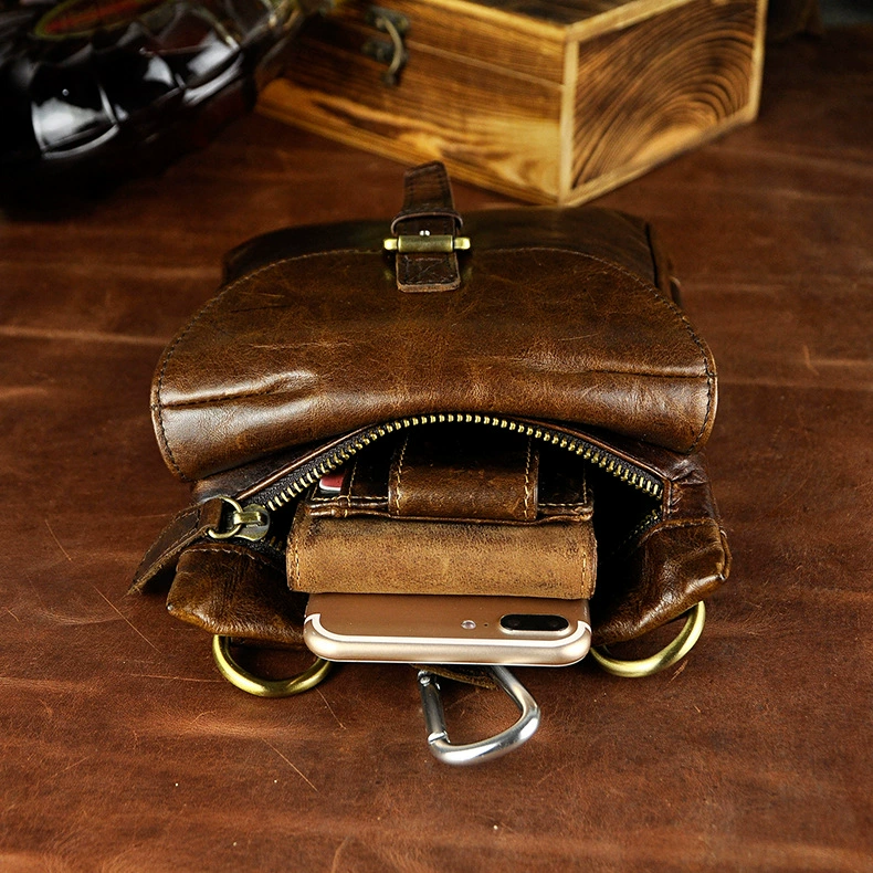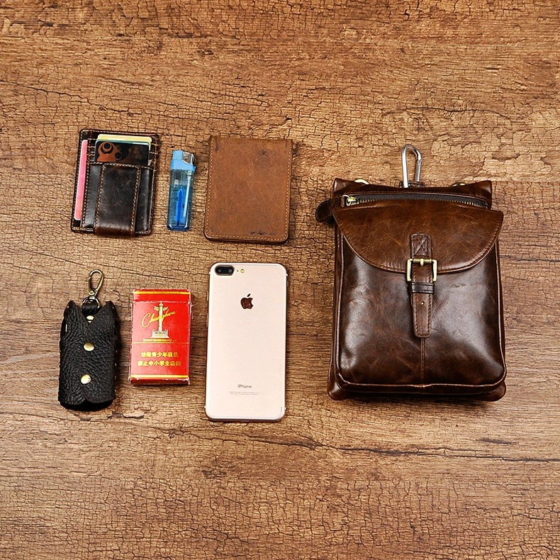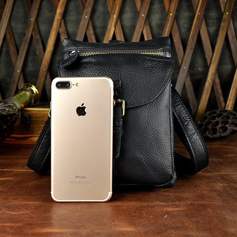Поясная Сумка через плечо, сумка-мессенджер из натуральной кожи модного качества с кожаным крючком, 7 дюймов, поясная сумка для телефона, 6552-lb