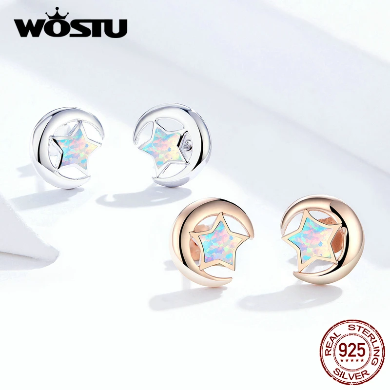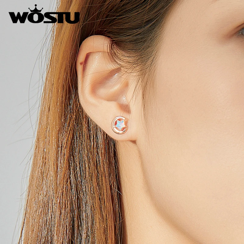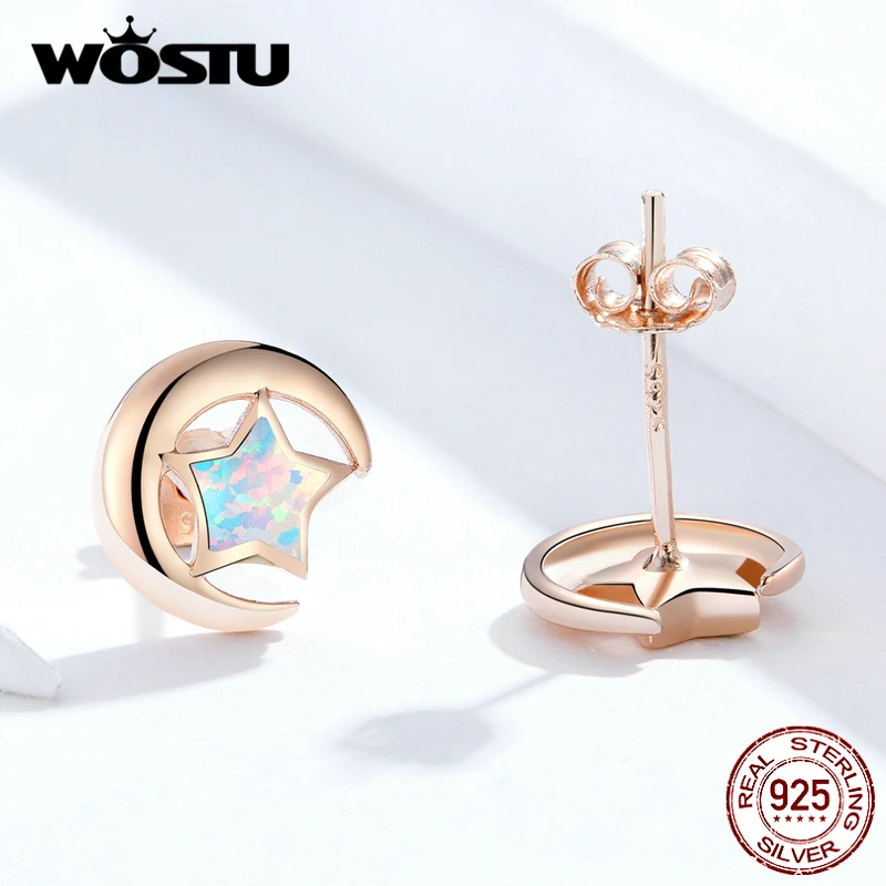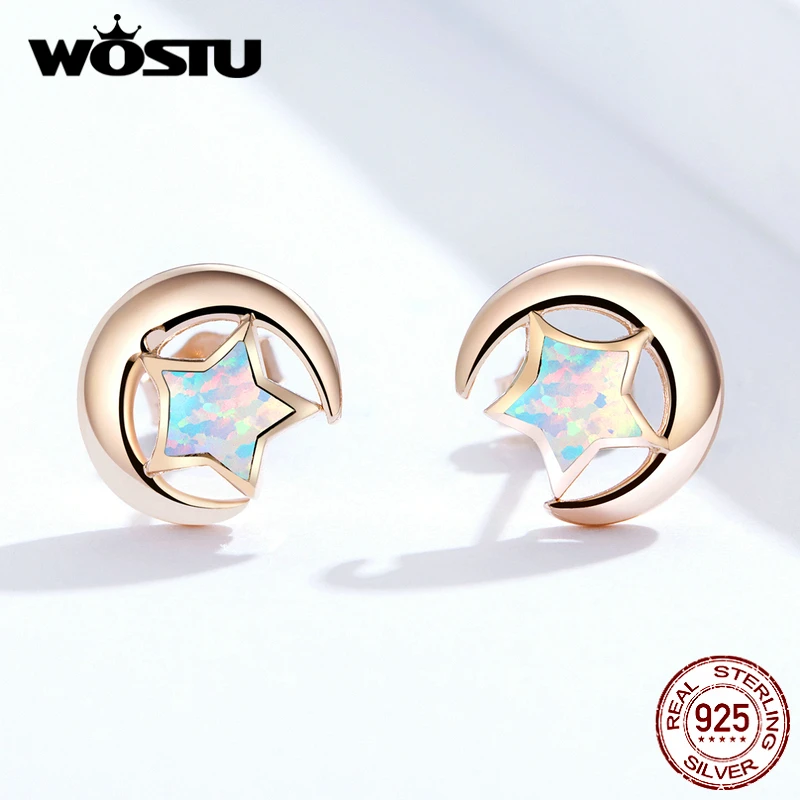 WOSTU, 925 пробы, серебряные, цветные, звезда, опал, розовое золото, серьги-гвоздики для женщин, свадебные серьги, Мода 925, ювелирное изделие, CQE816-C
