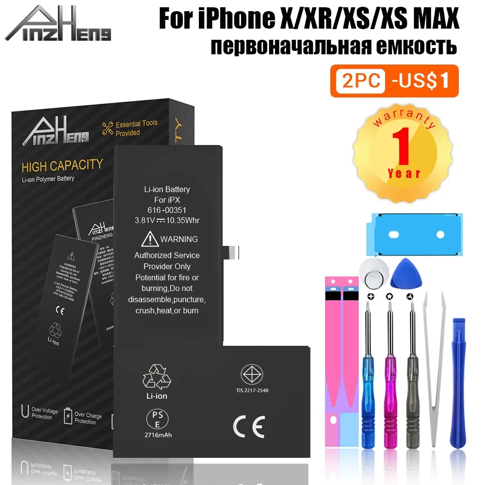 Аккумулятор PINZHENG для iPhone X, XR, XS Max, XR, XS Max, с инструментами
