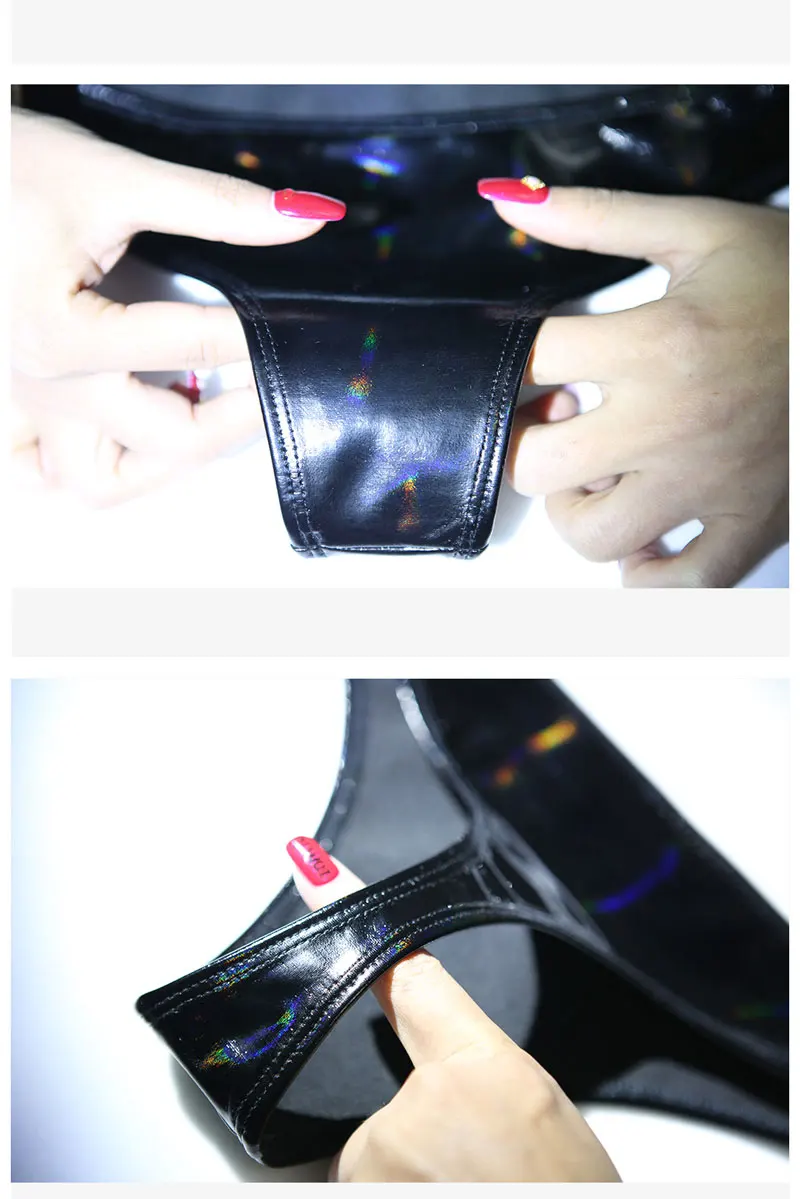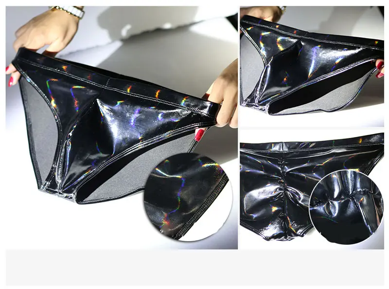 Женские сексуальные блестящие трусы с низкой посадкой из ПВХ, сцени...