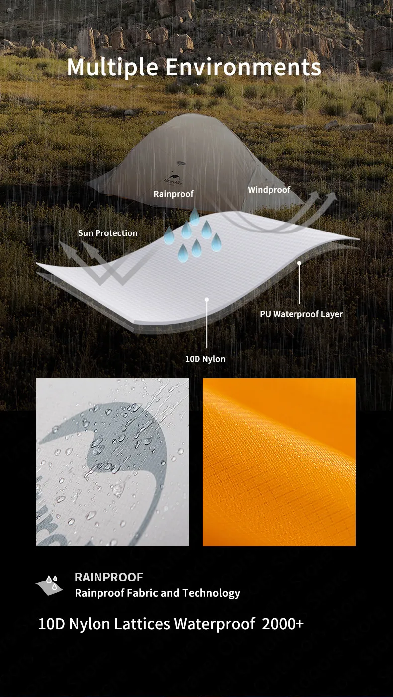 Туристическая палатка Naturehike 10D Cloud Up, Ультралегкая палатка для кемпинга на 2 персоны, с бесплатным ковриком, 930 г