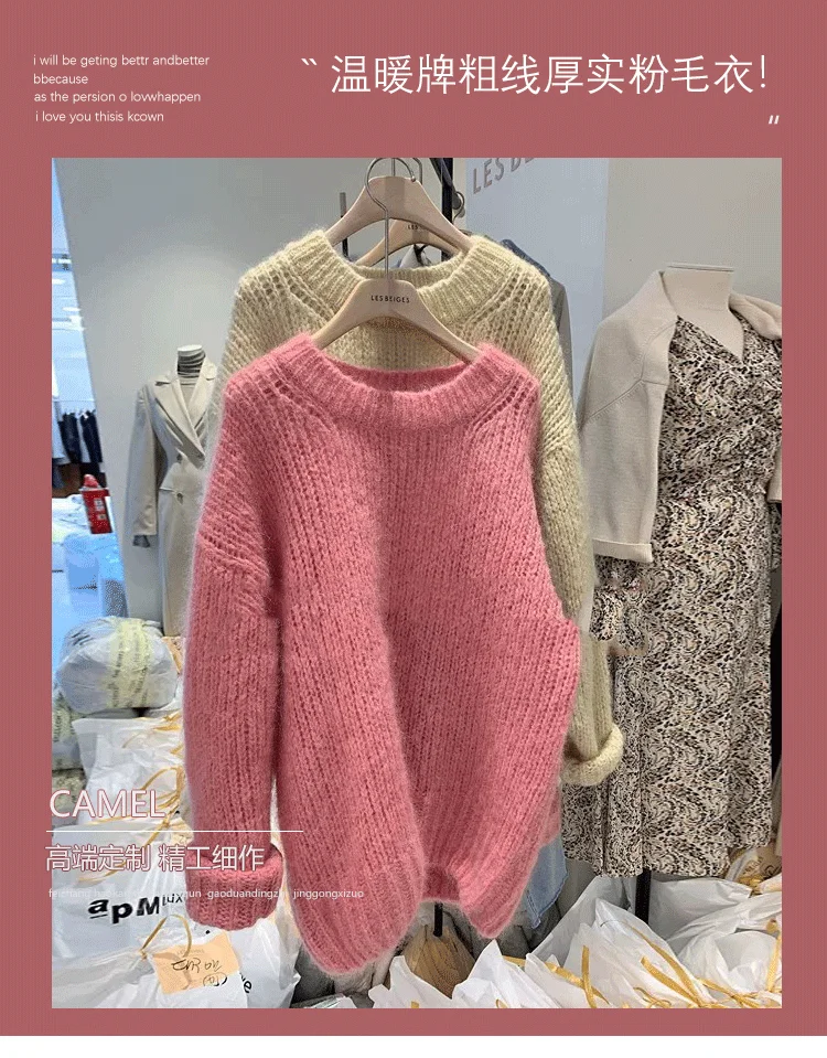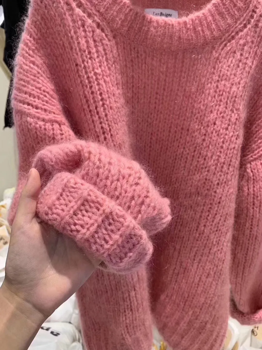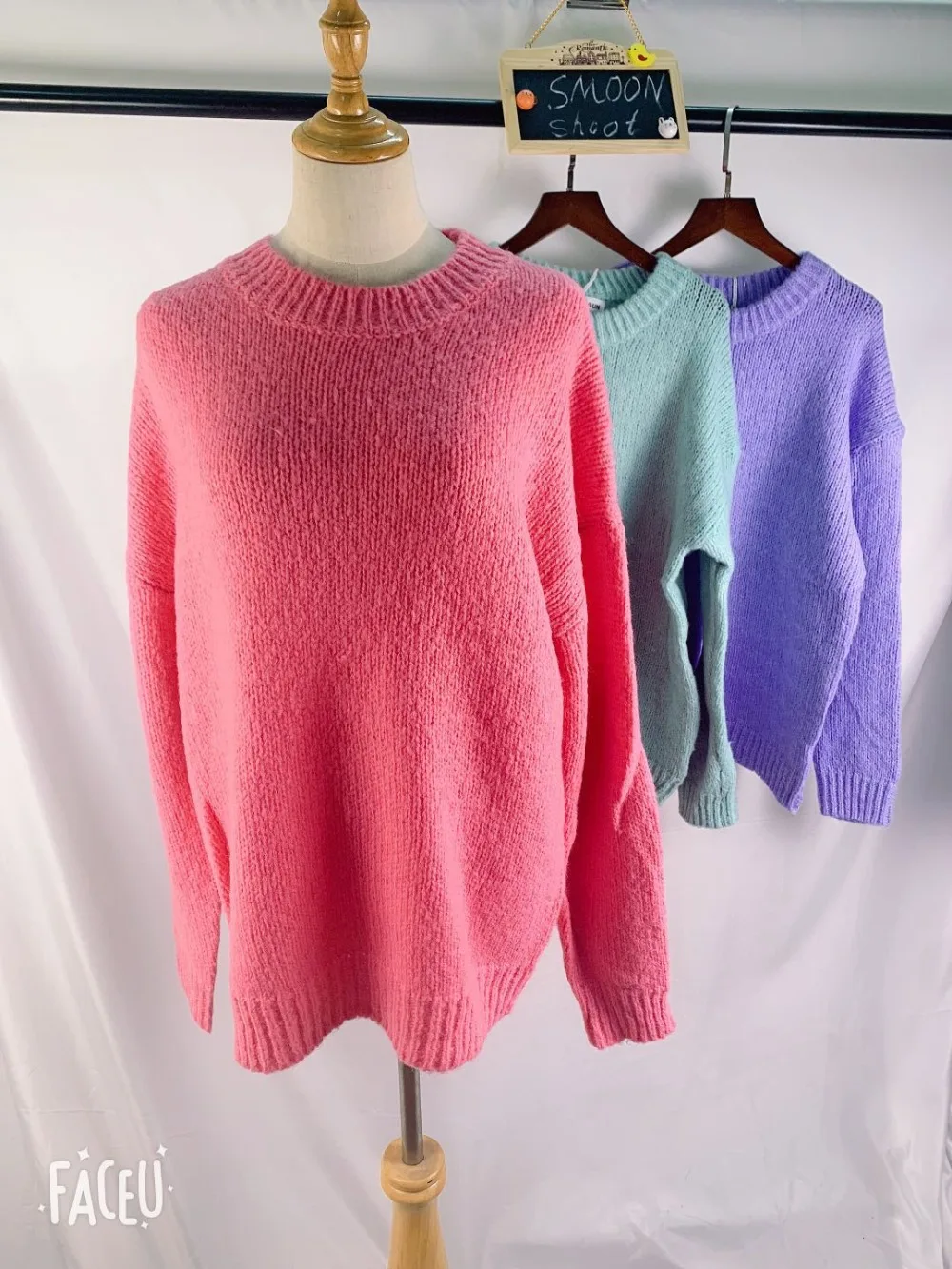 Свитер Женский вязаный осенне-зимний, с круглым вырезом
