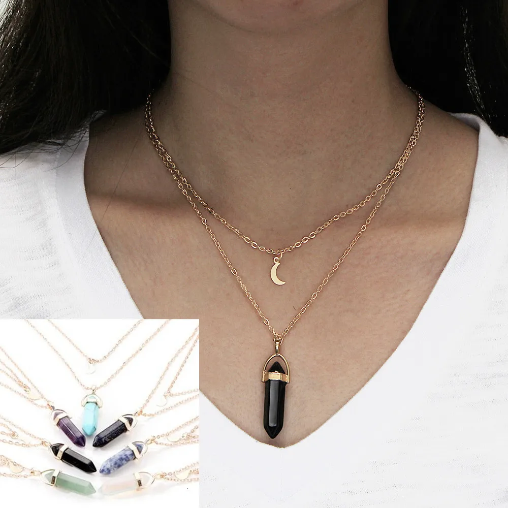 Nacklaces, Женские Ювелирные изделия, натуральный камень, стекло, шесть углов, луна, колье, двухслойный полумесяц, пуля, подвеска, свадебное ожерелье, цепочка