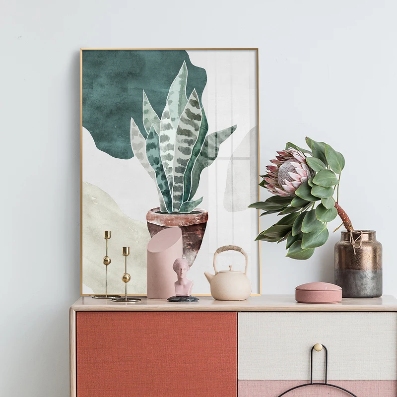 Скандинавская акварельная картина на холсте с зелеными растениями, ...