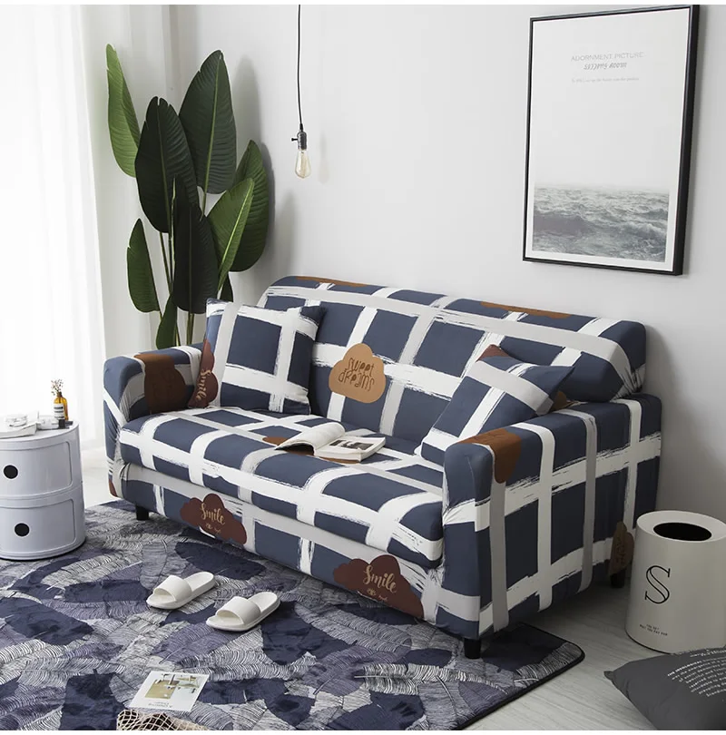 Однотонный эластичный чехол для дивана в гостиную, набивной клетчат...