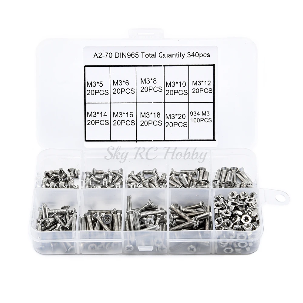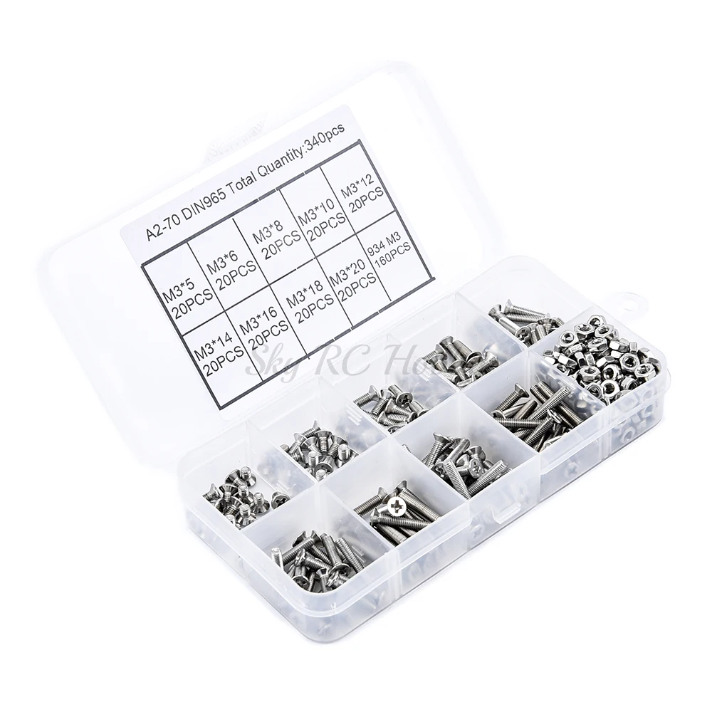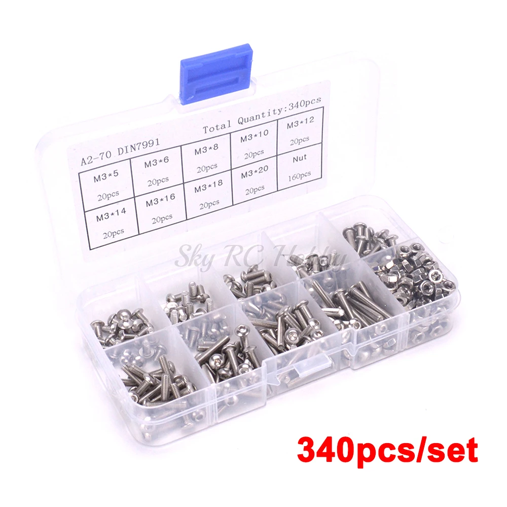 340 шт.компл. M3 Шестигранная головка из нержавеющей стали