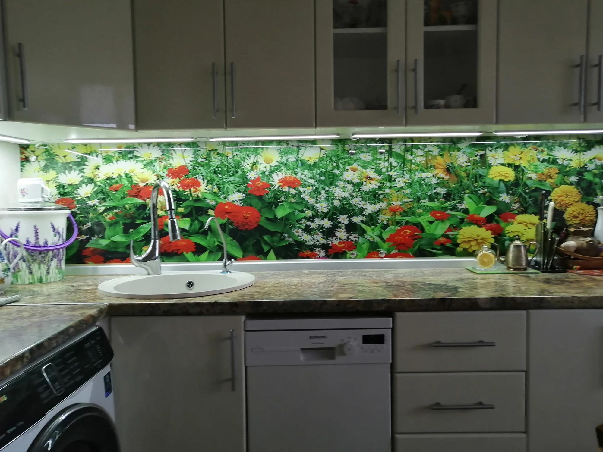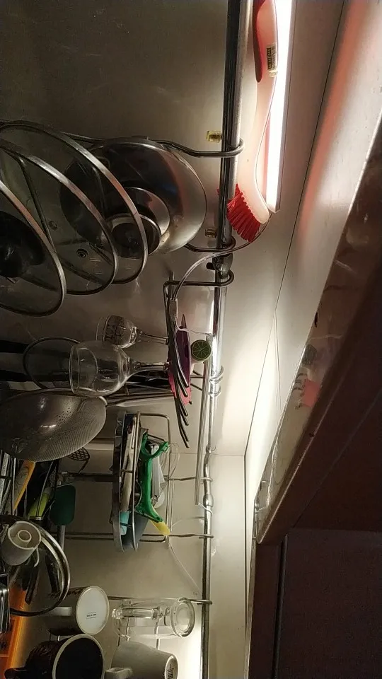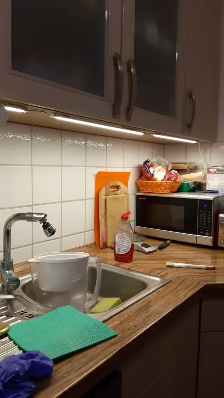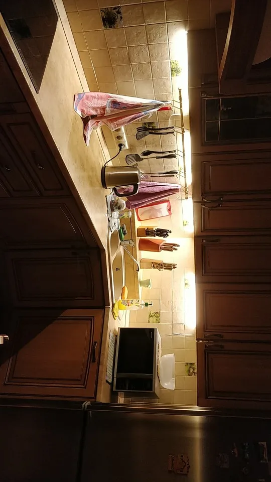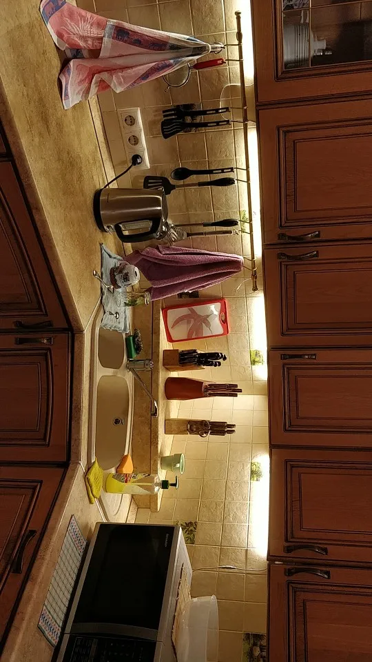 Очень хорошее освещение даже почти слишком сильное, у нас нет проблем, чтобы увидеть его кухню