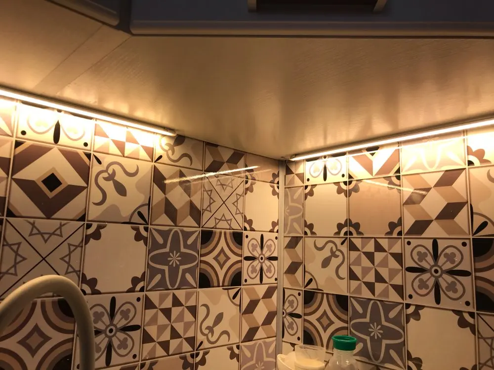 Отличные светильники, светят ярко.Датчик движения работает без сбоев, на расстоянии 5-10см включает и выключает. Очень удобно. Пришли упакованные в надувной бокс. Доехали за три недели в Ленингр. Обл. Муж придумал как спрятать провода и получилось вообще огонь! Спасибо за отличные светильники, качество высокое! Однозначно советую.