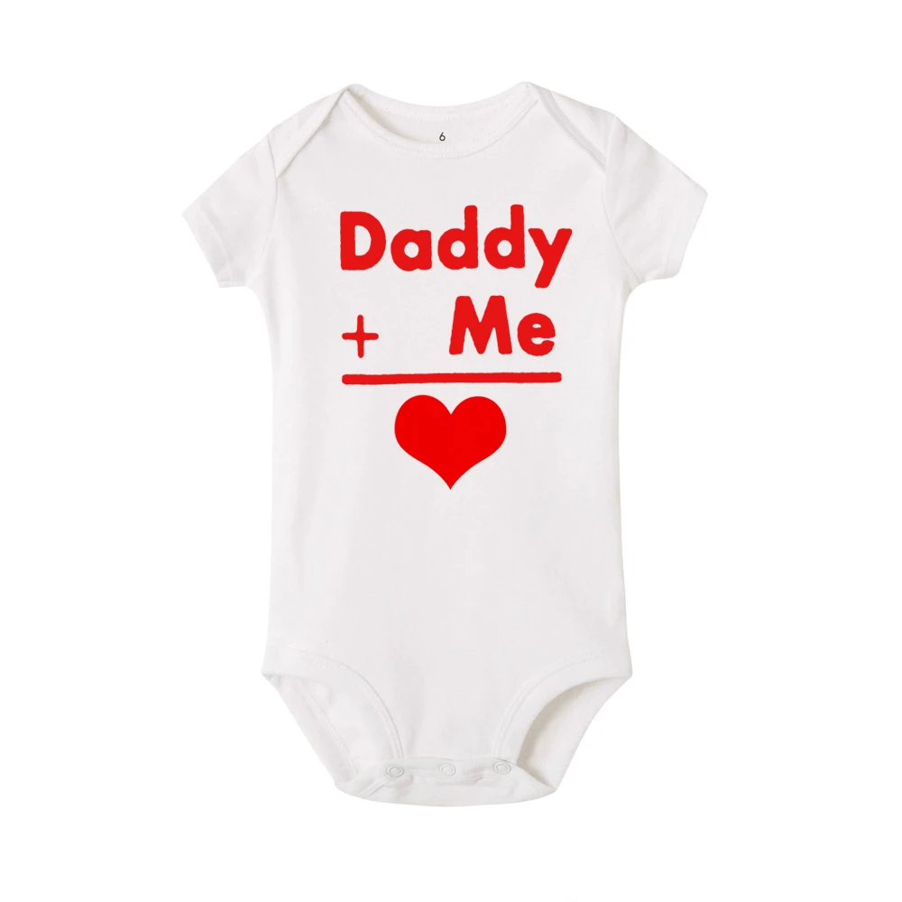 Комбинезон на День святого Валентина с надписью «daddy + me = love» для маленьких девочек Комбинезон для первого дня святого Валентина Милая Одежда для новорожденных мальчиков и девочек праздничная одежда