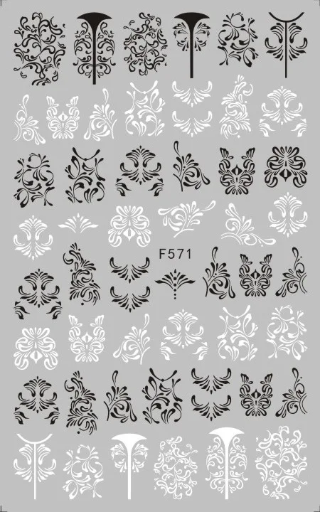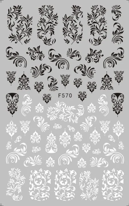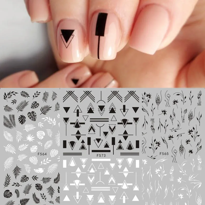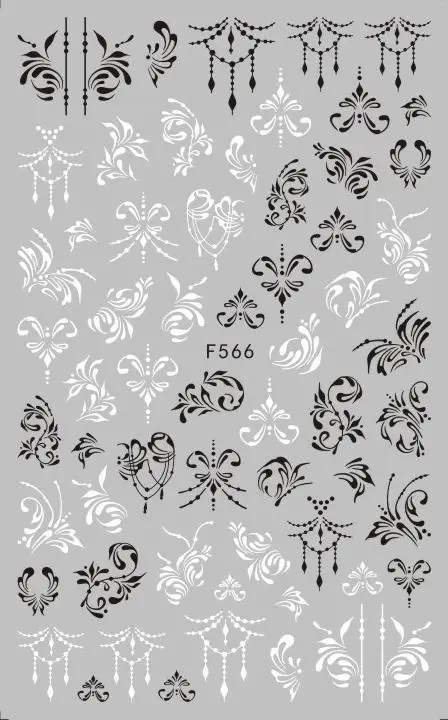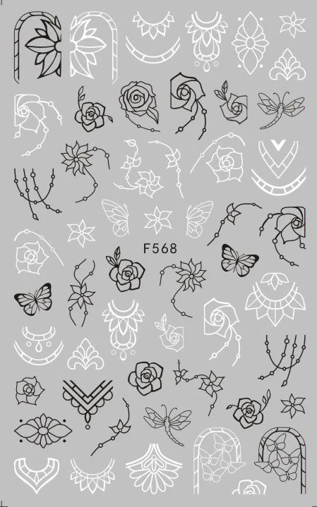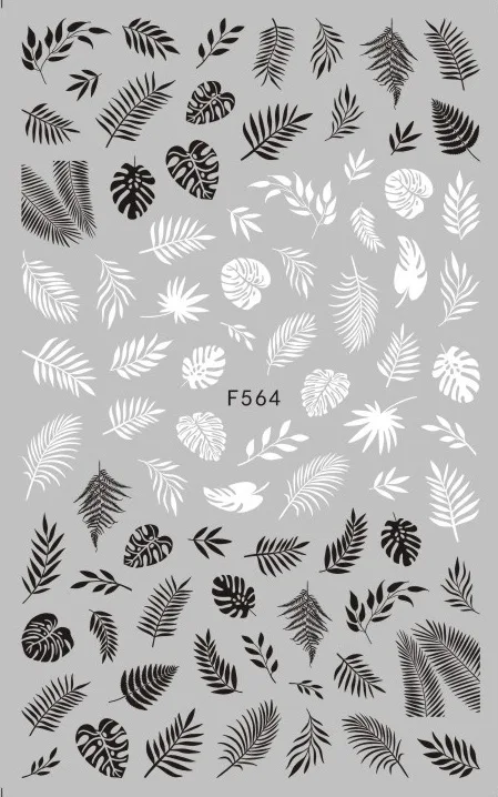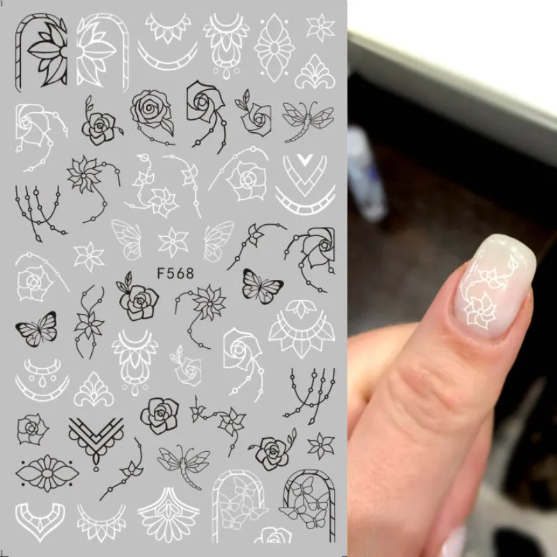 3D наклейки для ногтей, 1 шт., черныебелые, с изображением цветка мандалы, тропических листьев, бабочек, украшения для ногтей, аксессуары для дизайна ногтей