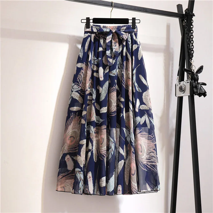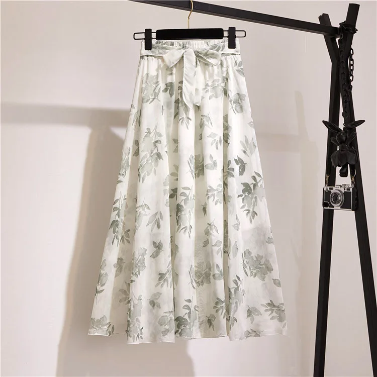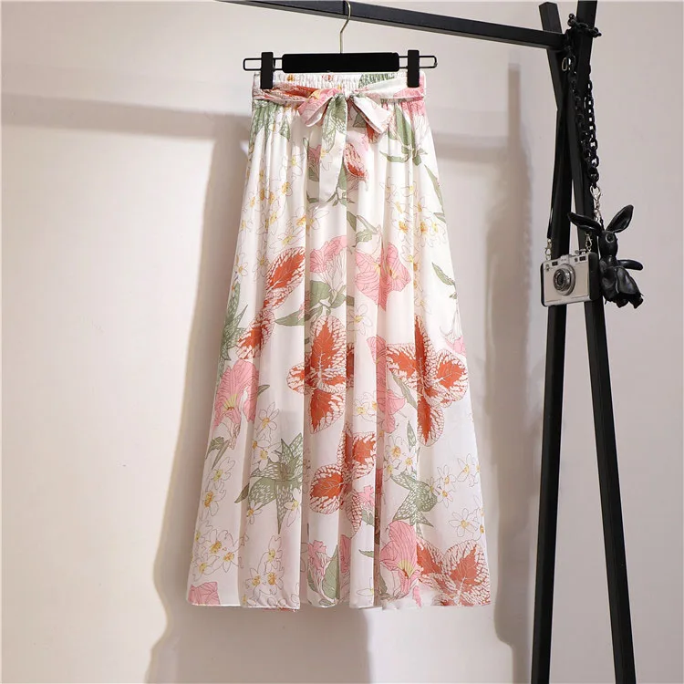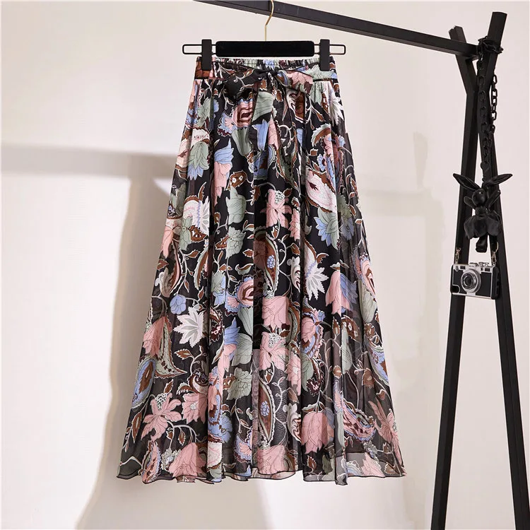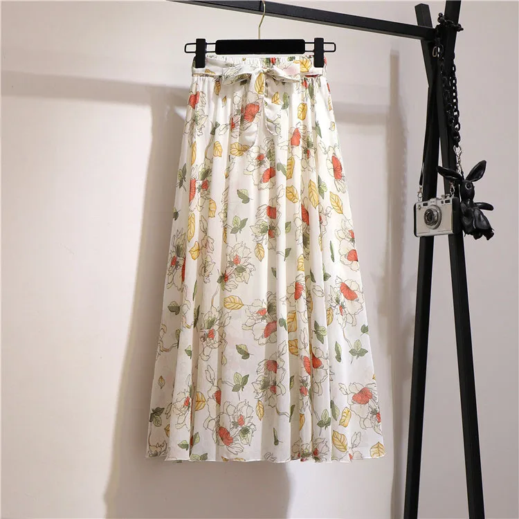 Женская юбка с цветочным принтом, летняя розовая трапециевидная Юбка-миди с высокой талией, в Корейском стиле, шифоновые женские юбки