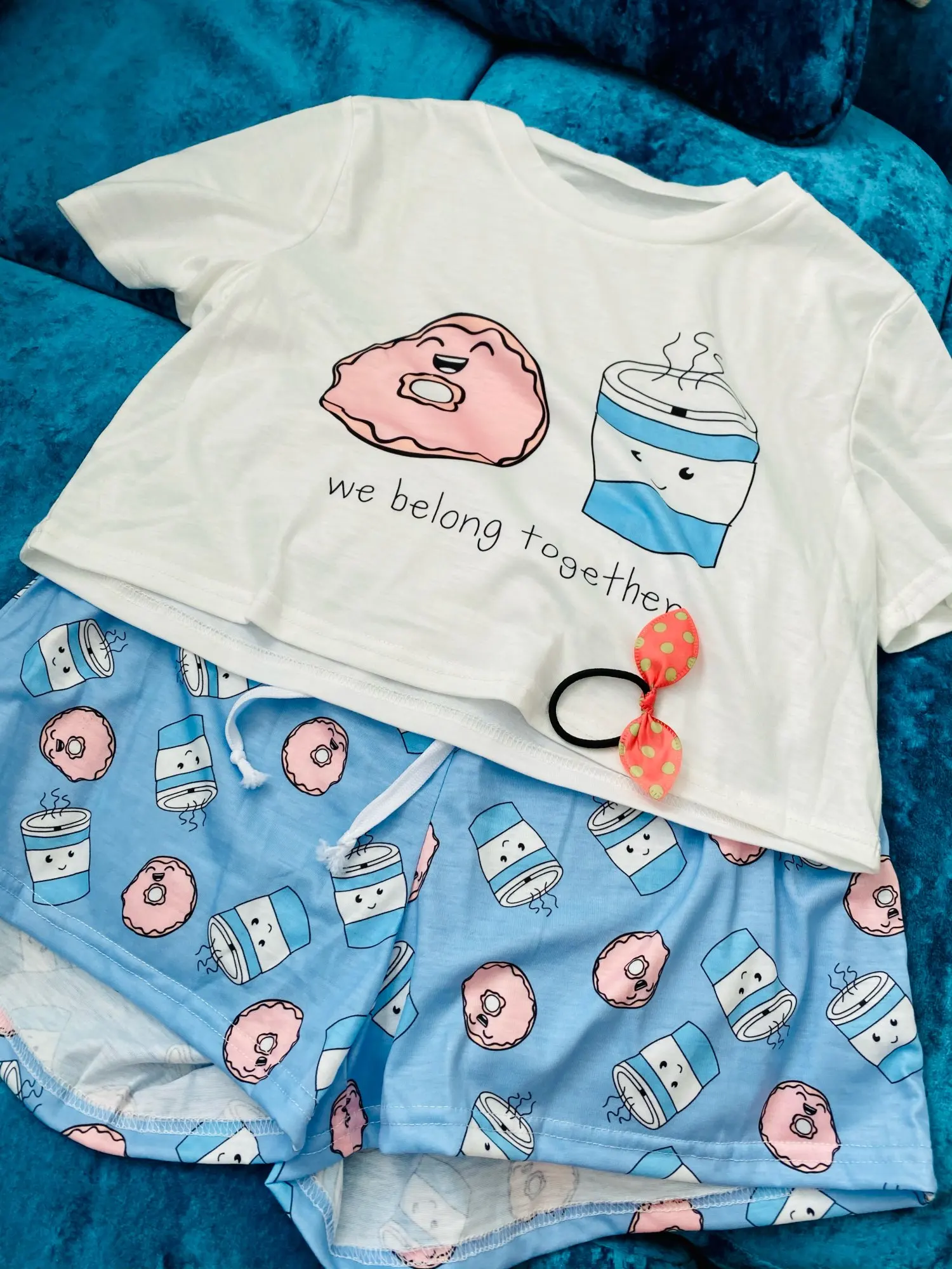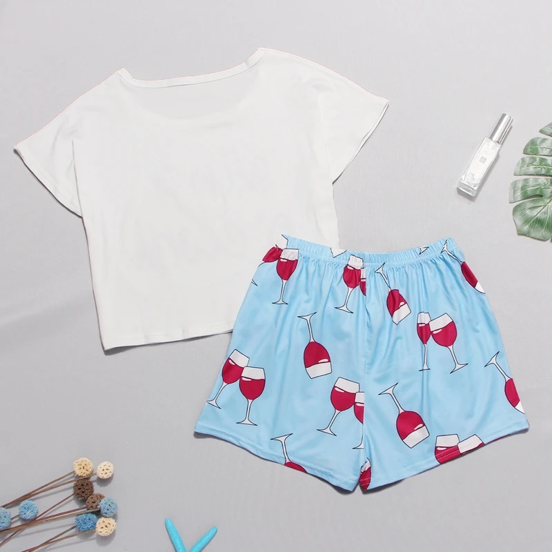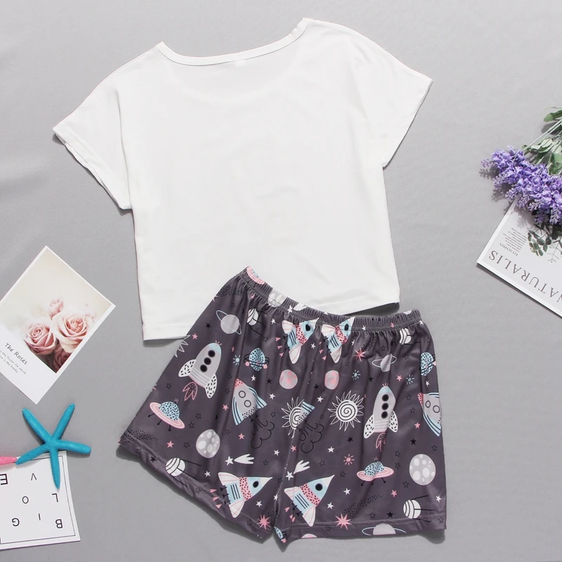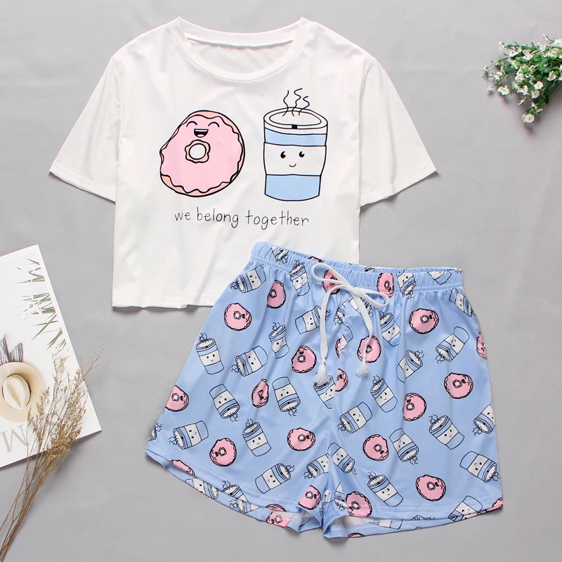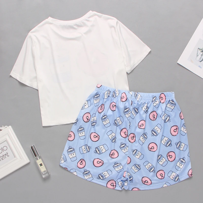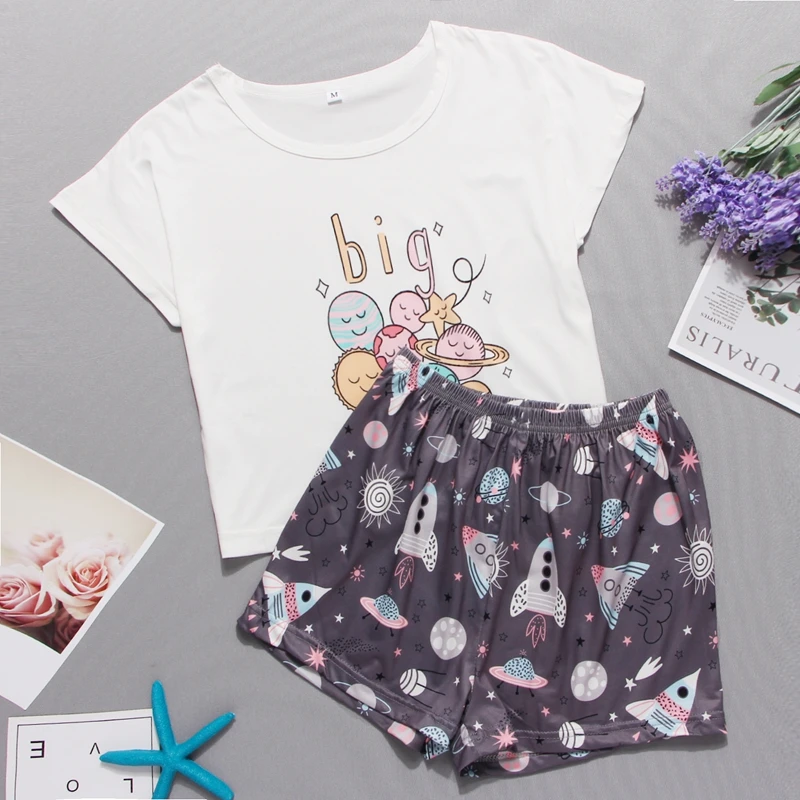 Женская пижама, милый мультяшный принт, короткий комплект, пижама для женщин, пижамный комплект, милая летняя Пижама