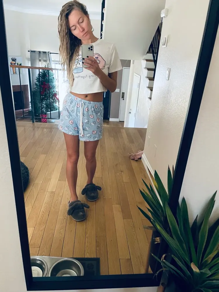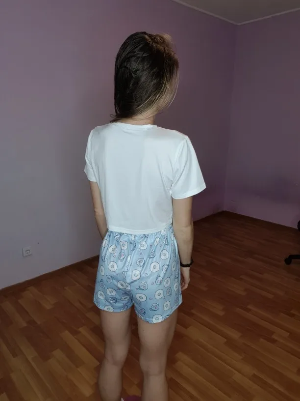 Доставка в МО 3 недели до пункта выдачи. Приятная к телу трикотажная пижамка, топ укороченный, размер М на параметры 93-75-98 в размер, ни больше ни меньше. Пошито ровно, качественно, шорты на резинке, рисунок после стирки не выцвел.