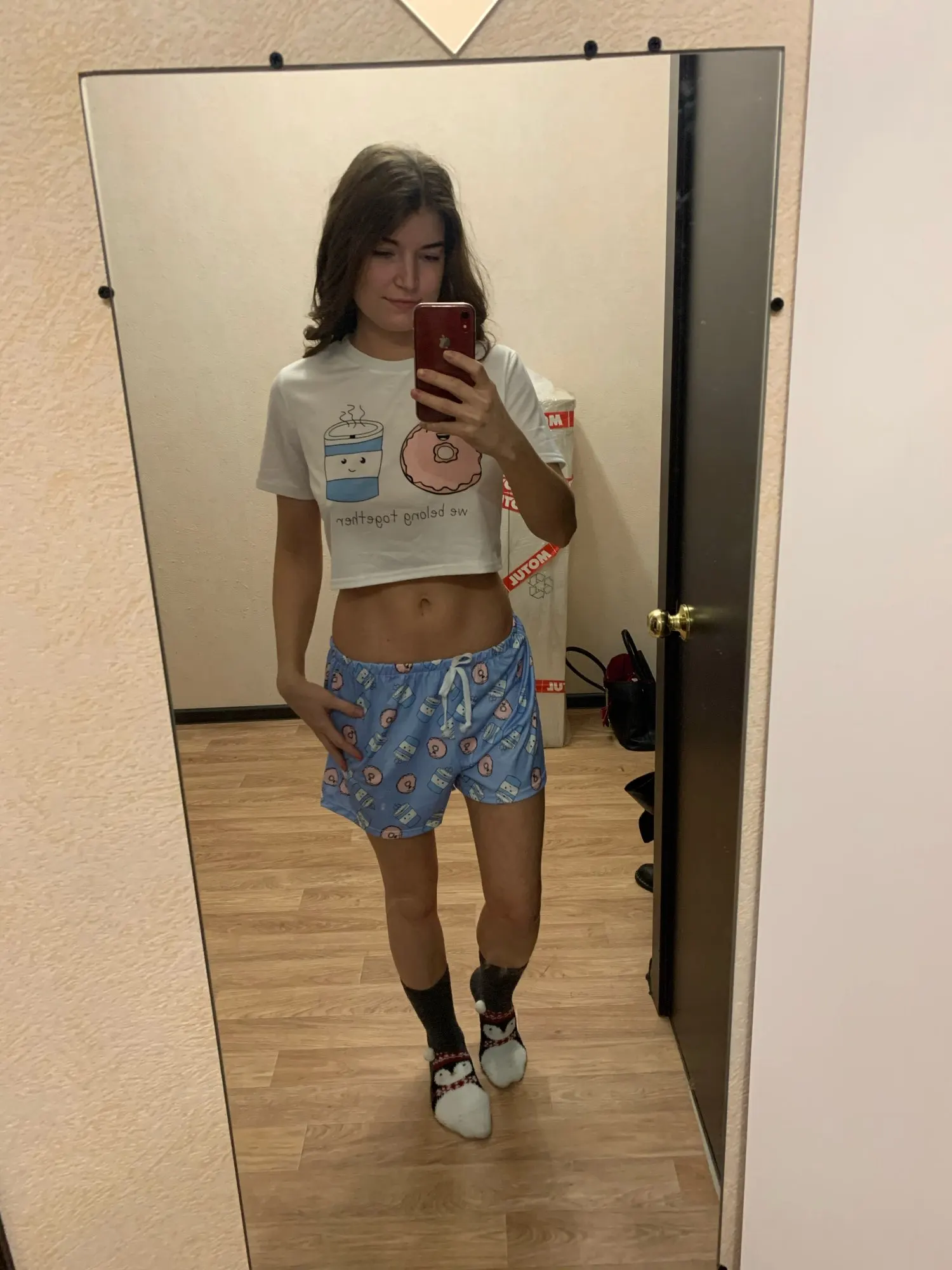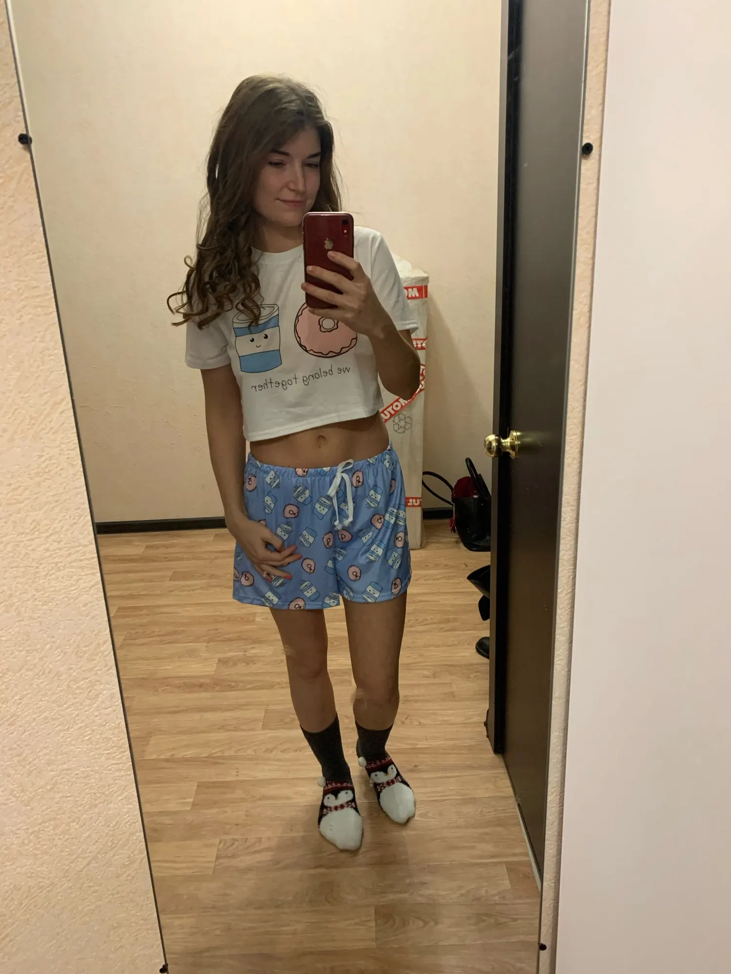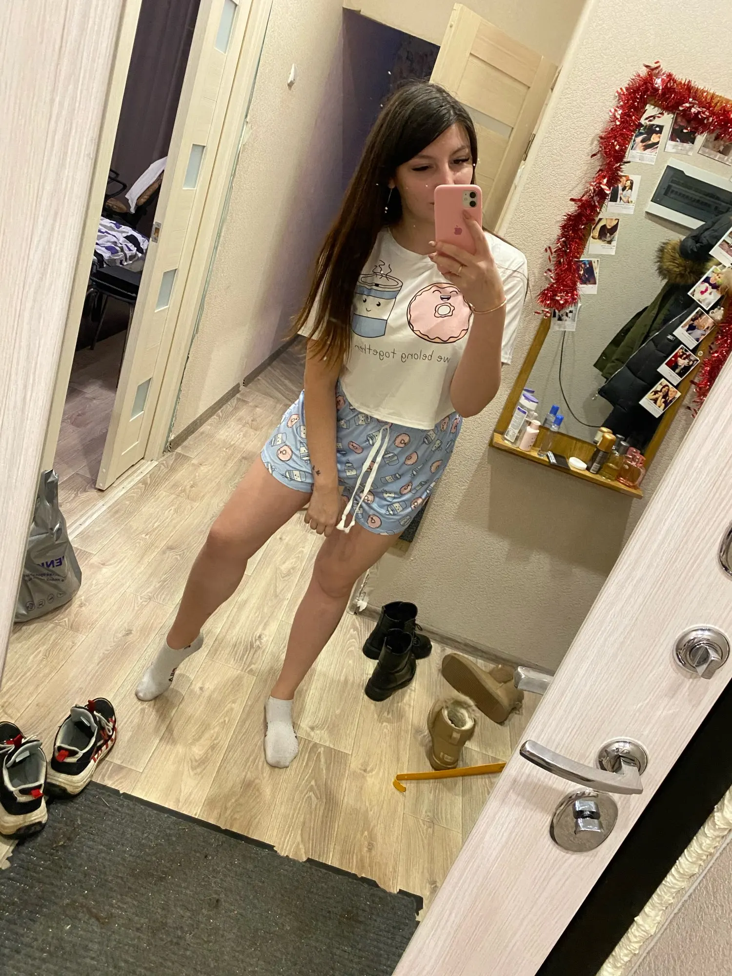 Пижамка очень приятная , мягенькая:) мой рост 169, взяла м, чтоб всё закрывало и выглядело прилично))) всё подошло отлично , единственное, плечи квадрантные прям , но это как я поняла модель топа такая ) пришло недели за 2, в пятёрочку. В подарок резиночку положили , очень мило )