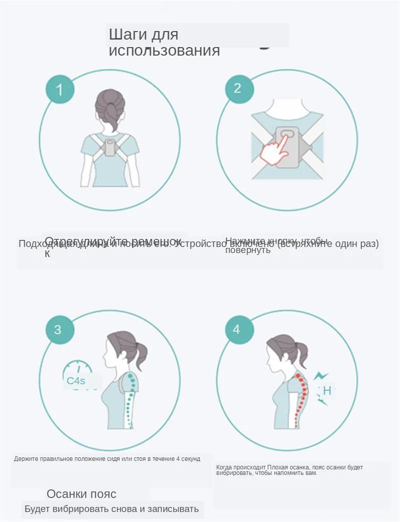 все работает, действительно при сутулости жужжит. инструкция на китайском, но она и не нужна. всего 1кнопка. годная штука