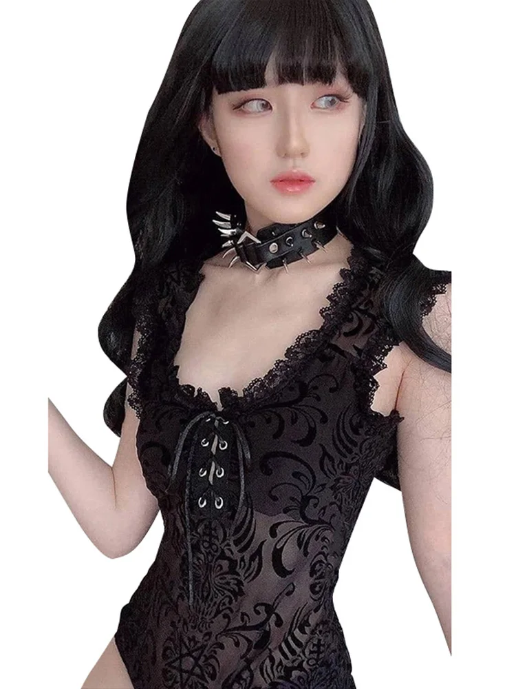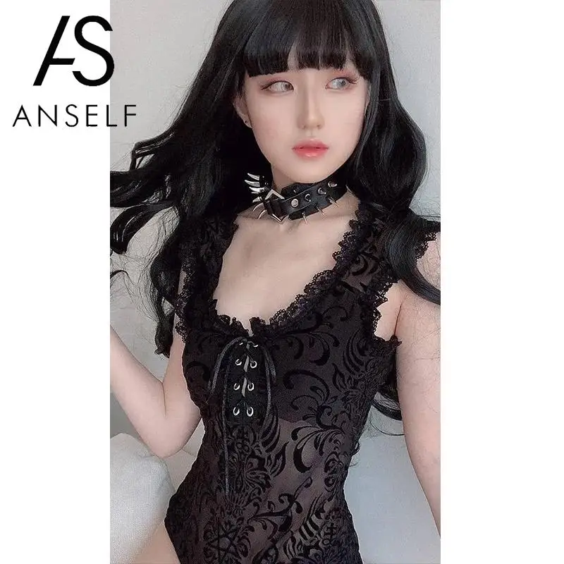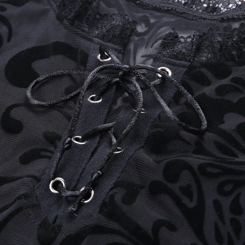 Женский Готический комбидресс без рукавов, черный прозрачный сетчат...
