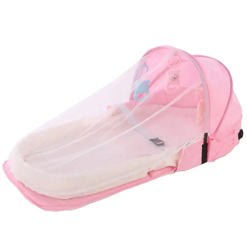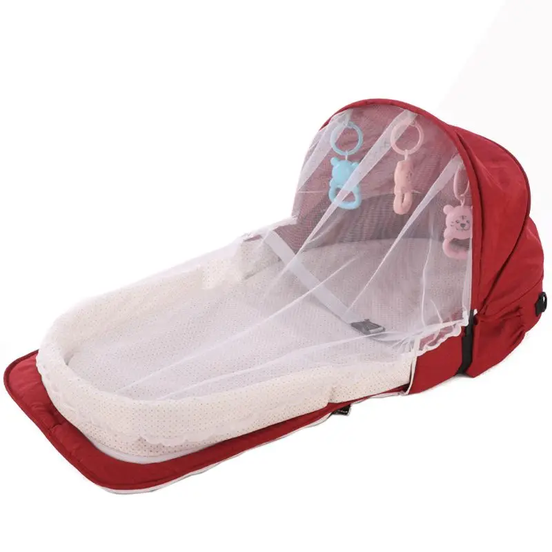 Переносной рюкзак-кровать с игрушками для ребенка, складная детская кровать для путешествий, защита от солнца, москитная сетка, дышащая детская спальная корзина