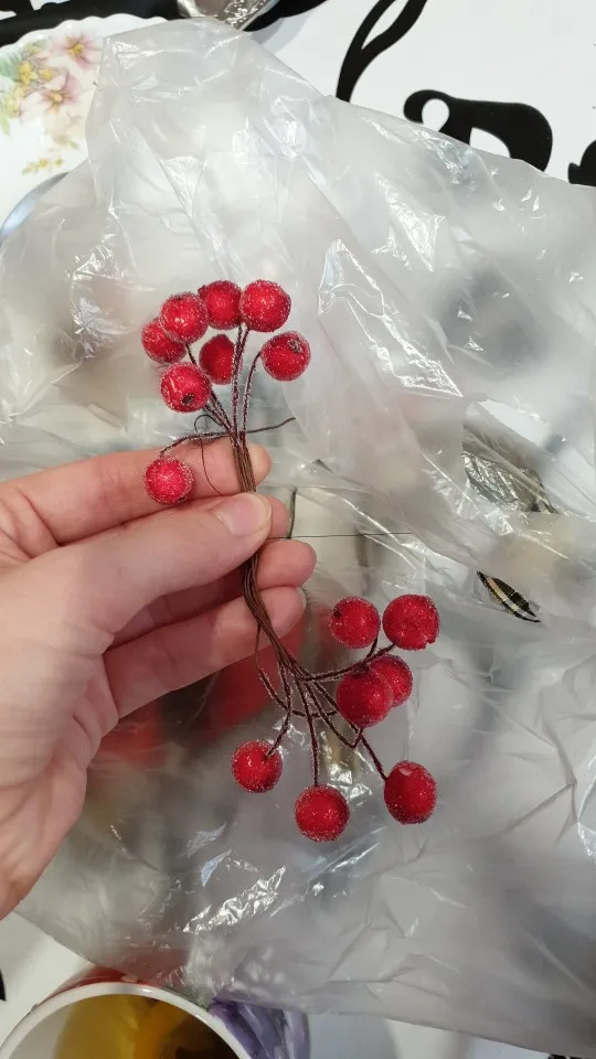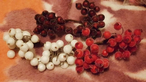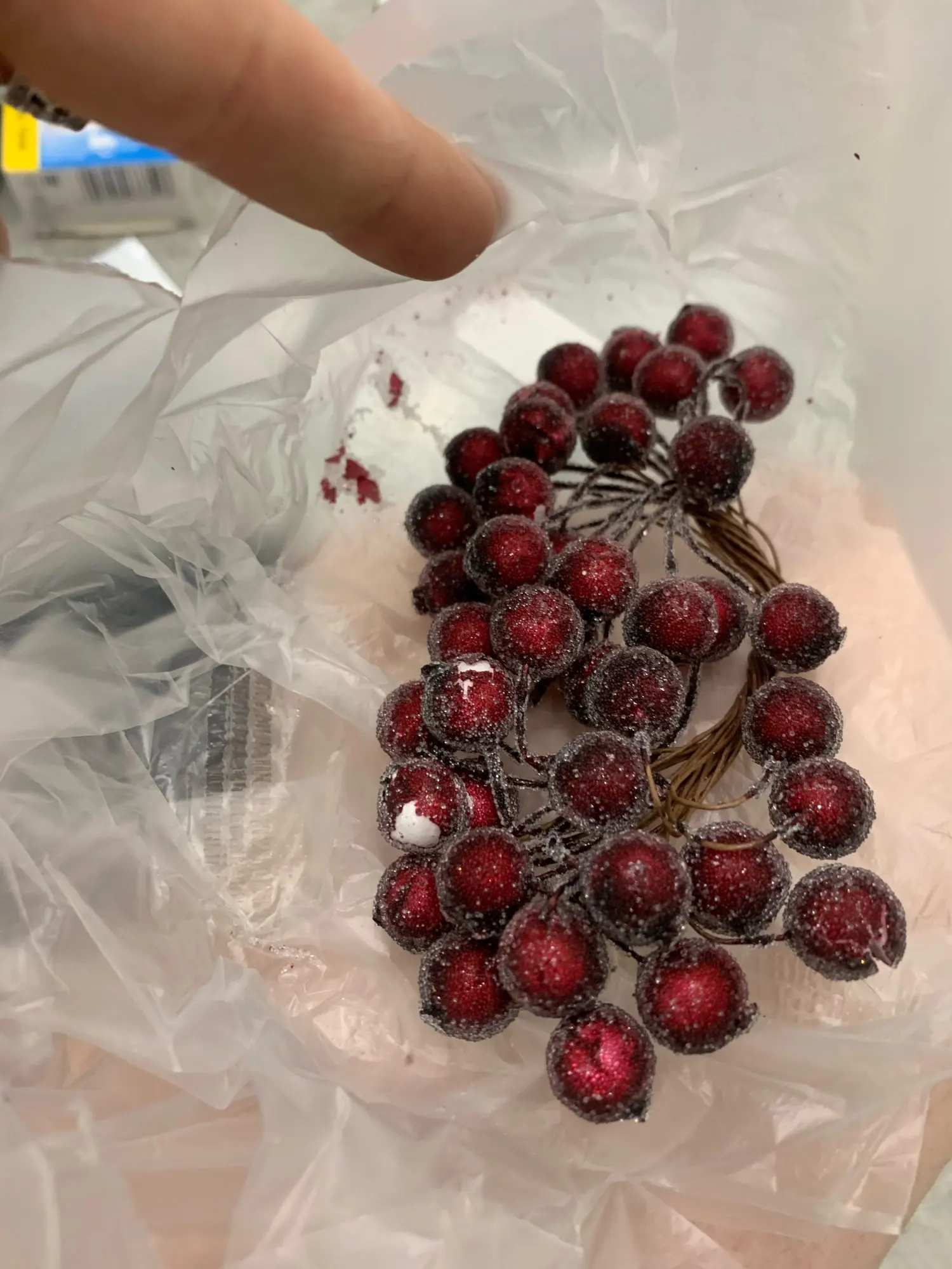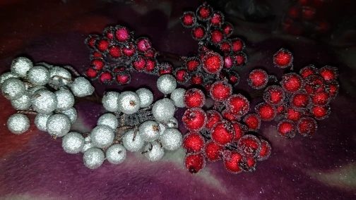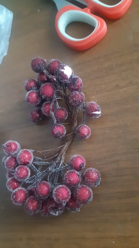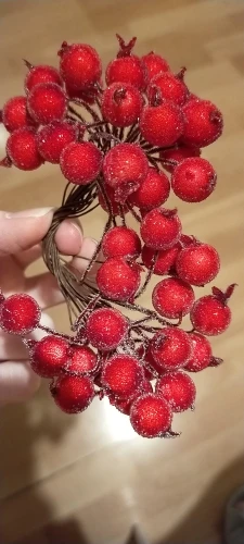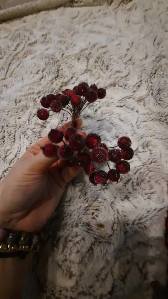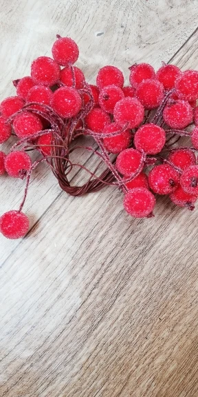 Очень миленькие ягоды, именно такие мне нужны были для новогоднего венка. Но доставка долгая, почти полтора месяца. Пришли в целости, чуть осыпались блёстки, но внешний вид ягод не пострадал. К покупке рекомендую.