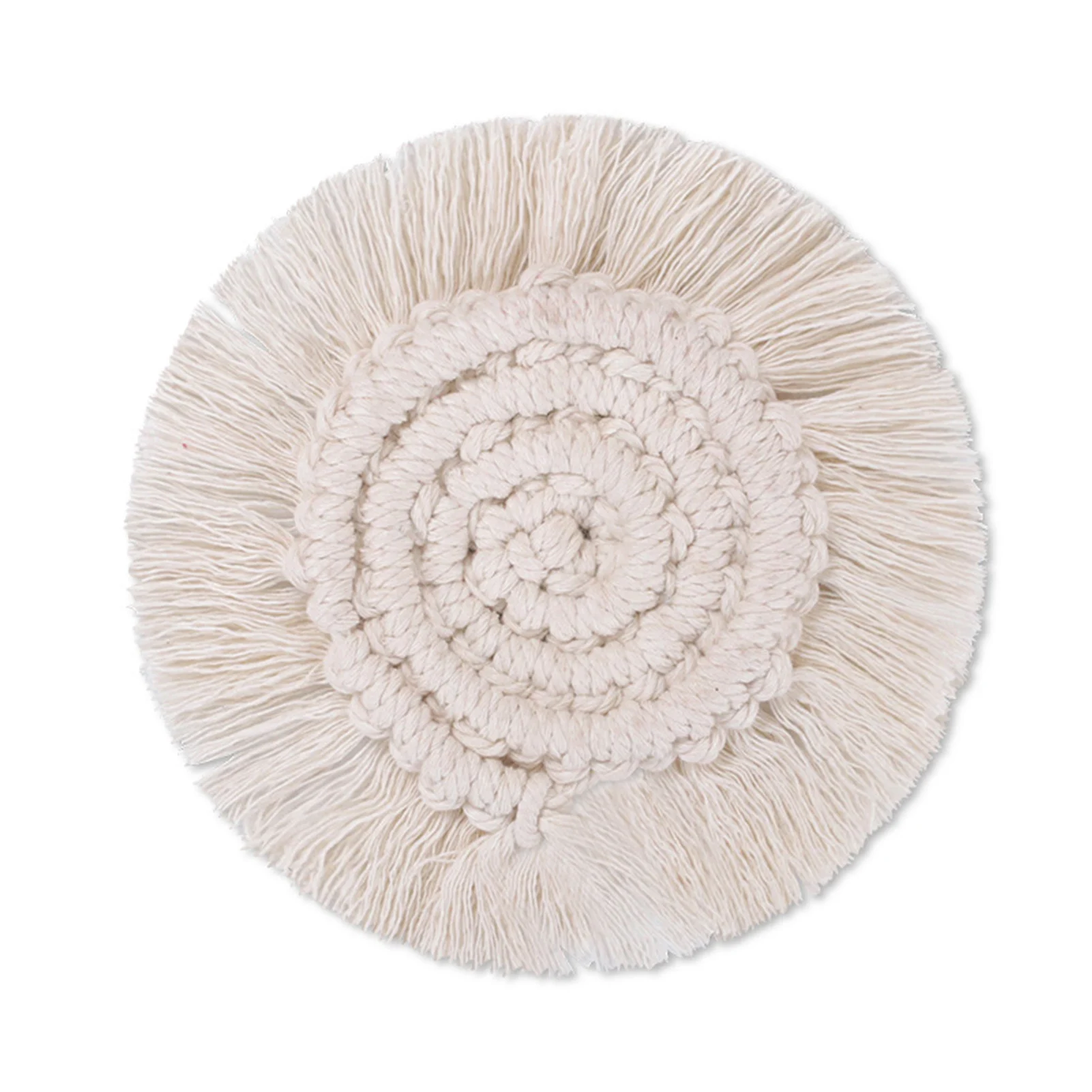 Хлопковая оплетка подставка ручной работы, подушка для чашки макраме в богемном стиле, нескользящий коврик для чашки, Теплоизоляционный Настольный коврик