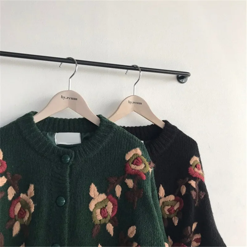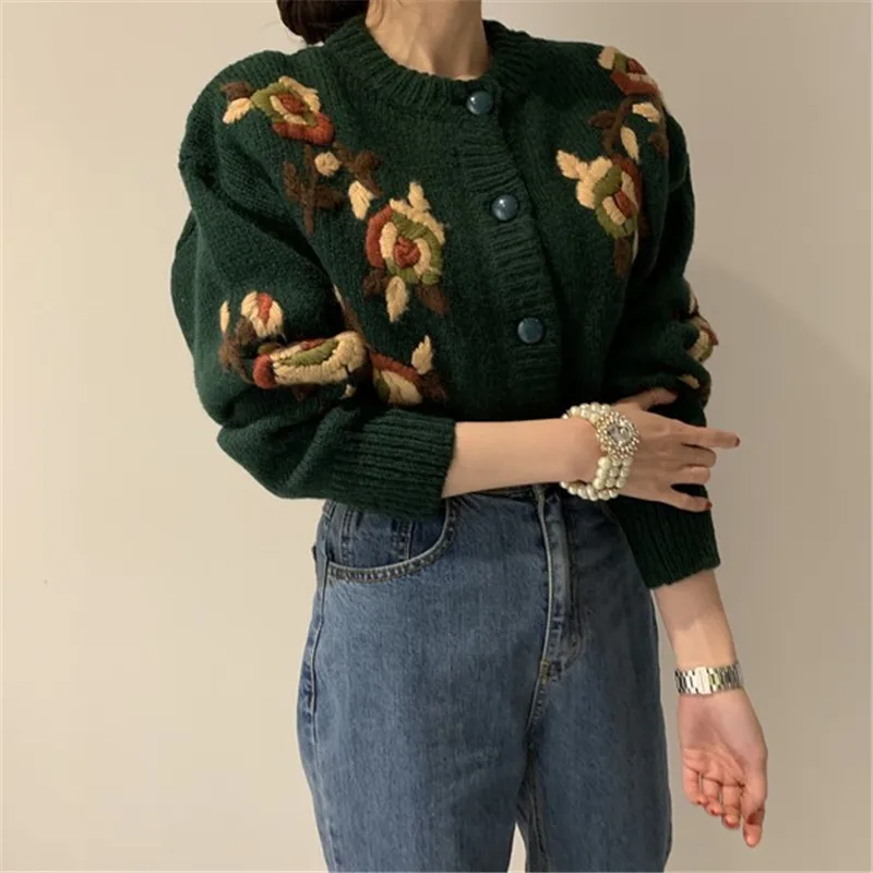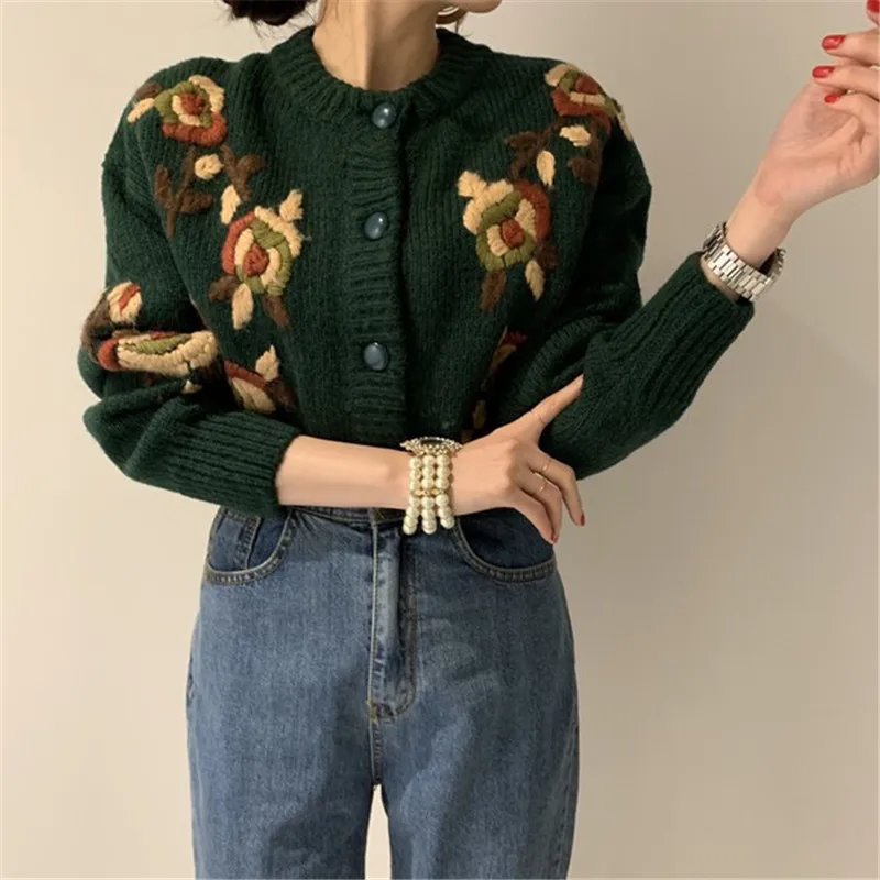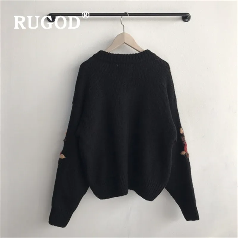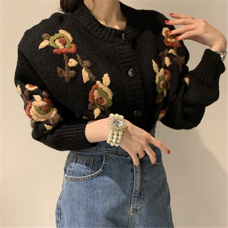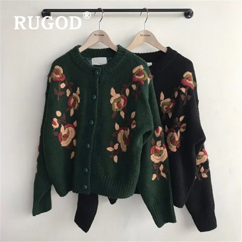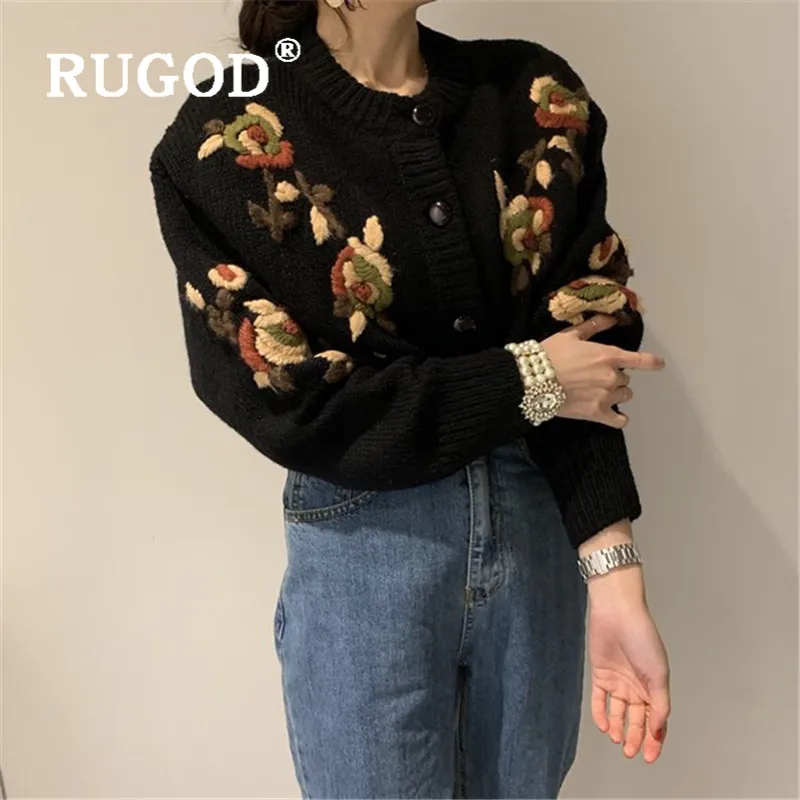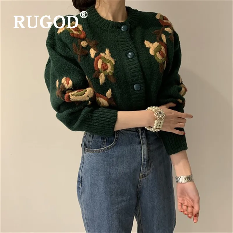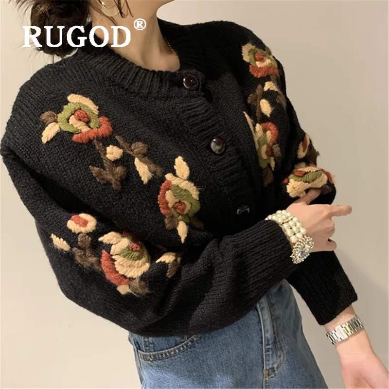 Корейский винтажный свитер RUGOD, кардиганы, женское вязаное пальто с ручной вышивкой и цветочным узором, шикарная утепленная туника, модная теплая Женская
