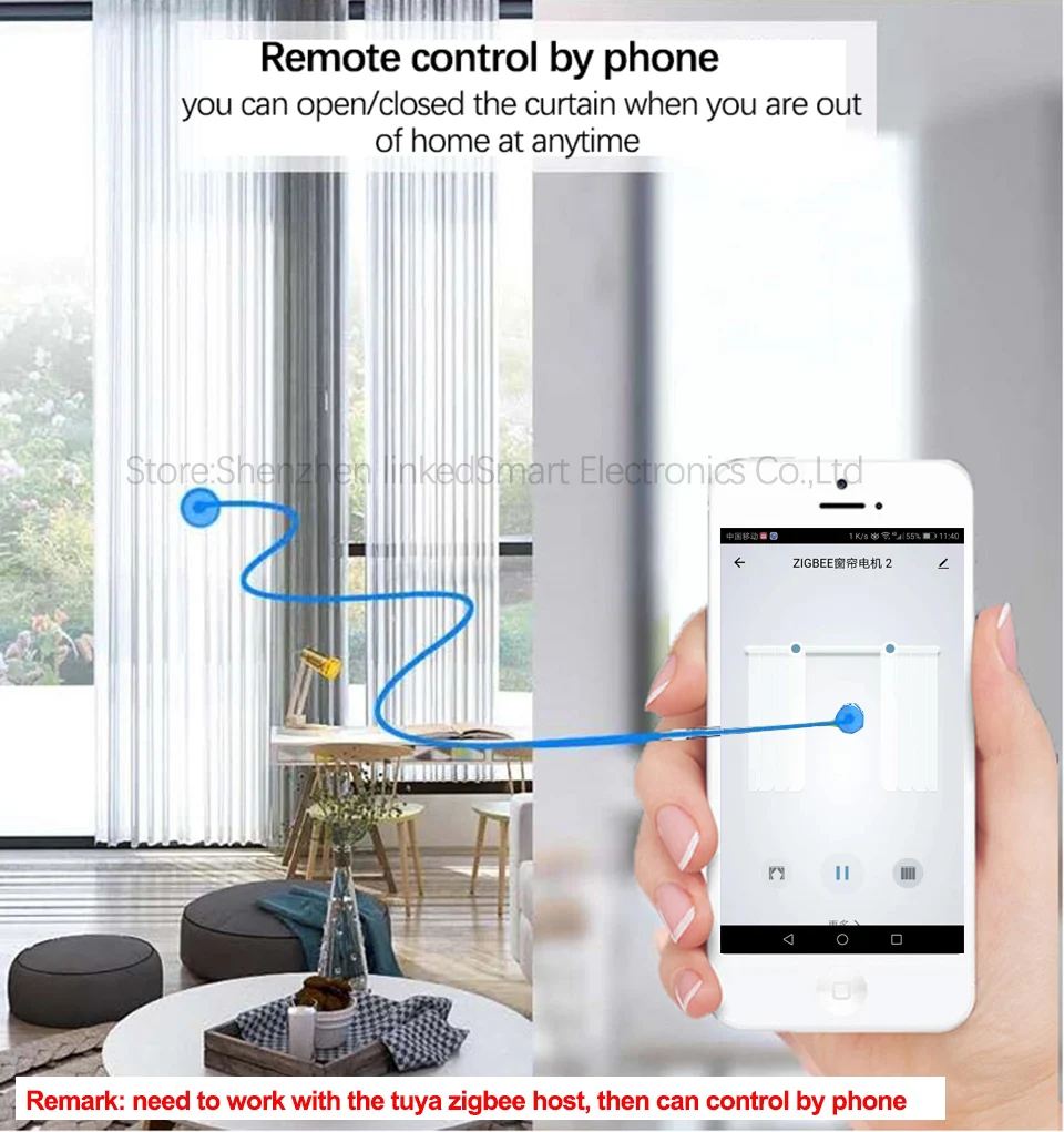 1. Если нужно управлять телефоном, двигатель должен работать с хостом tuya zigbee.