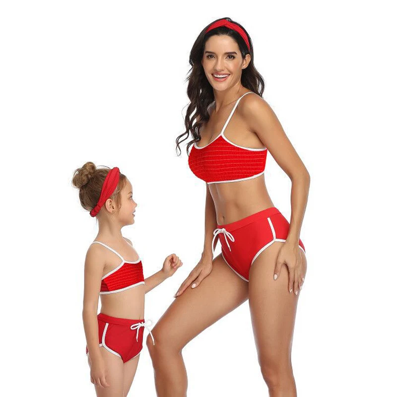 Новое поступление, купальник с высокой талией для родителей и детей, для мамы и дочери, Женский и девочек, семейный купальник, подходящий купальный костюм, пляжная одежда