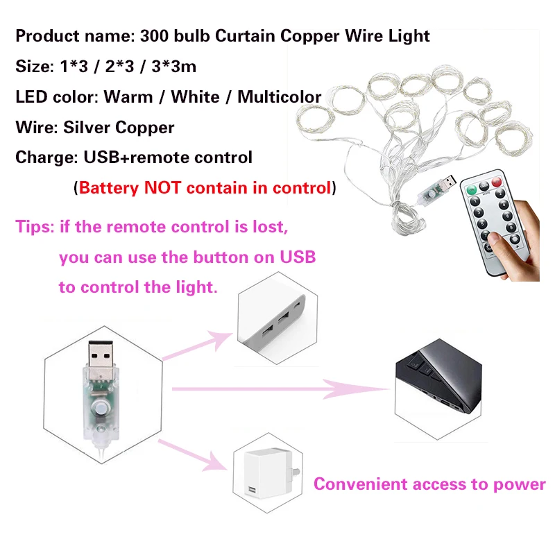 3M USB гирлянды 300 светодиодные оконные шторы лампы для Свадебная ...