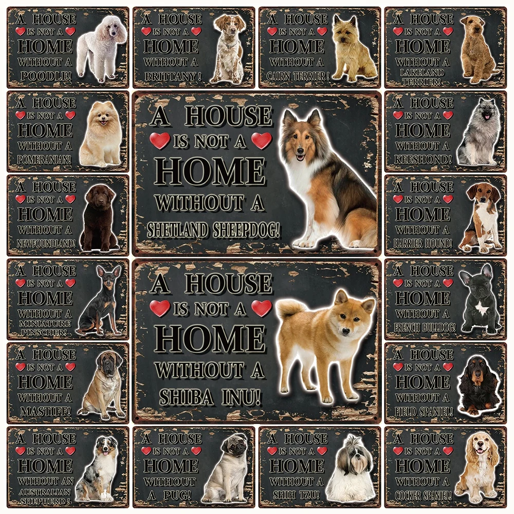 Металлический жестяной плакат с надписью домик-это не дом без собаки, размером 20 х30 см, размер DD-23