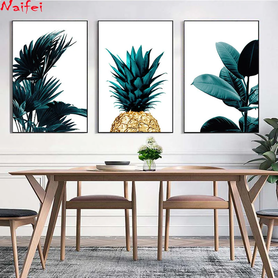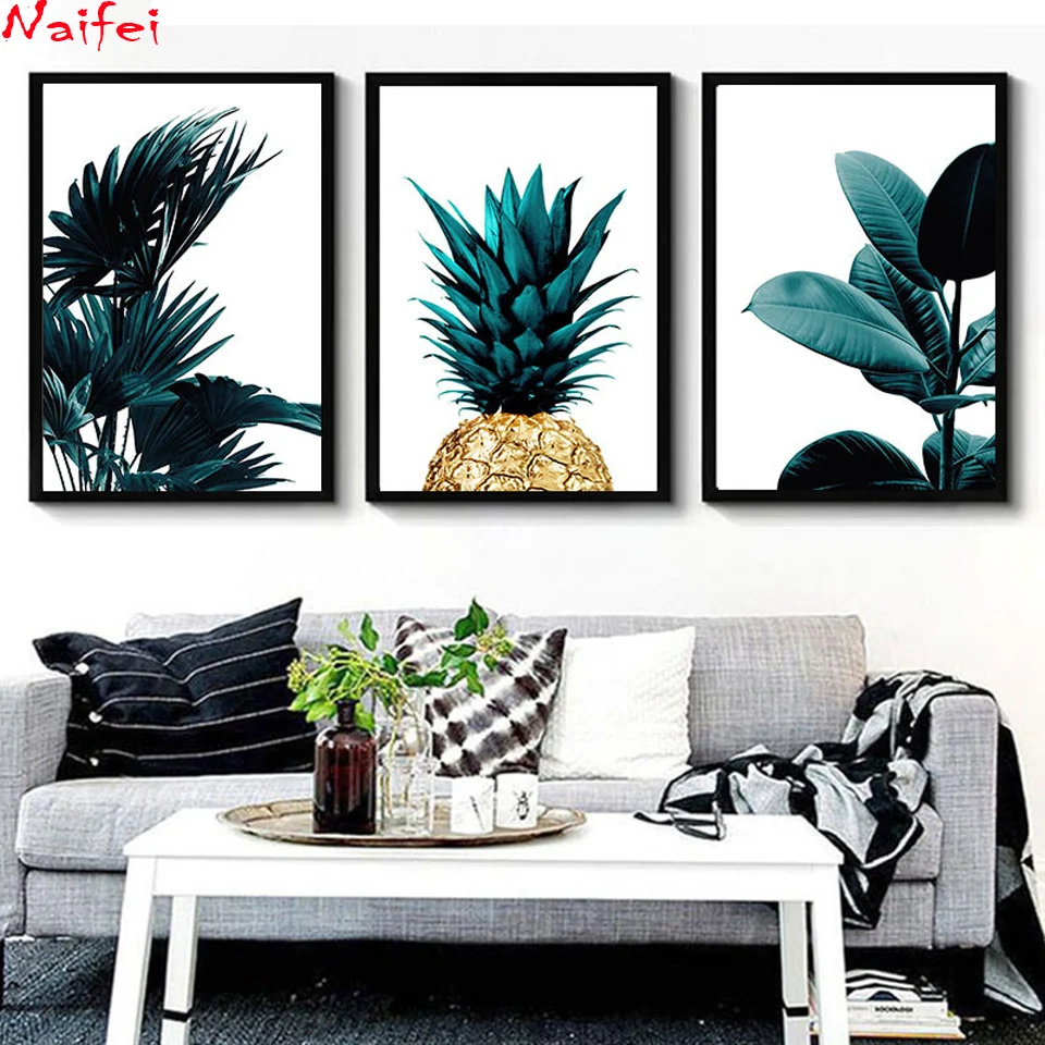Скандинавский стиль 5D DIY Алмазная картина "скандинавские тропические Пальмовые Листья, ананас" полная Алмазная вышивка мозаика крестиком Декор