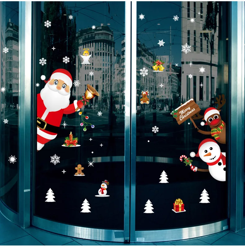 Мультяшные рождественские наклейки для окна, витрины, съемный Санта-Клаус, искусственный клей, ПВХ, новогоднее стекло, роспись, домашний декор