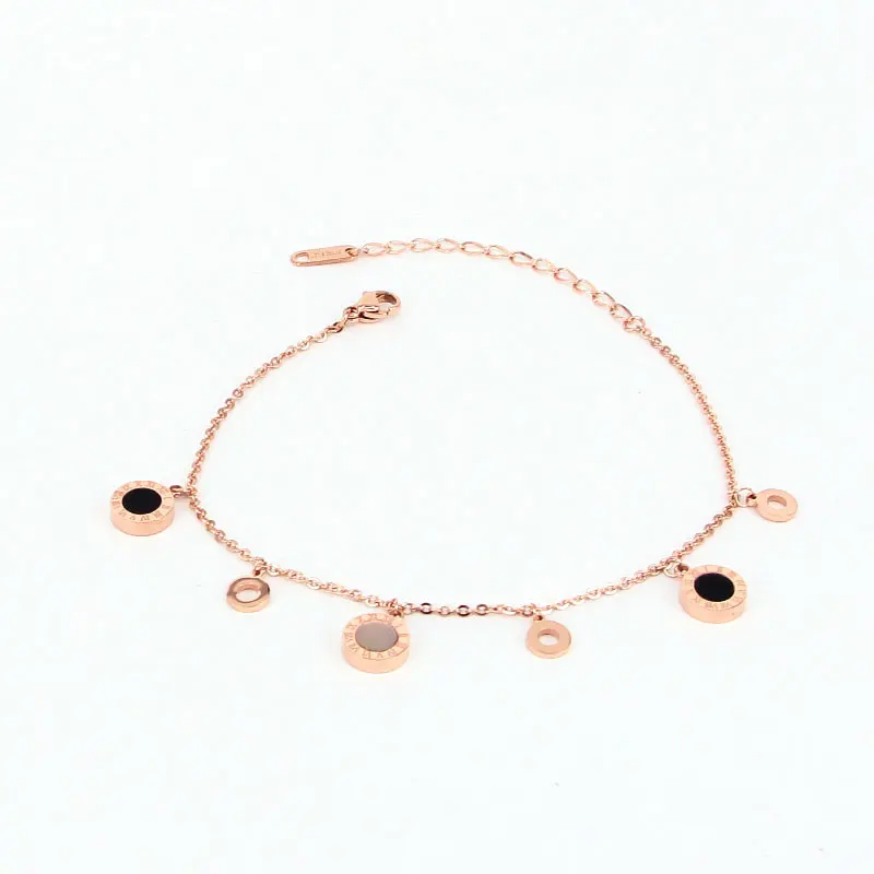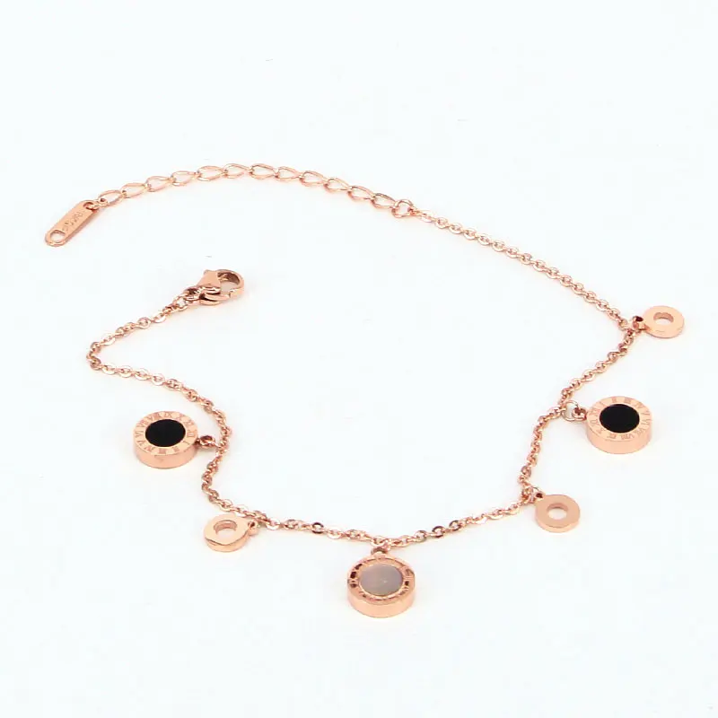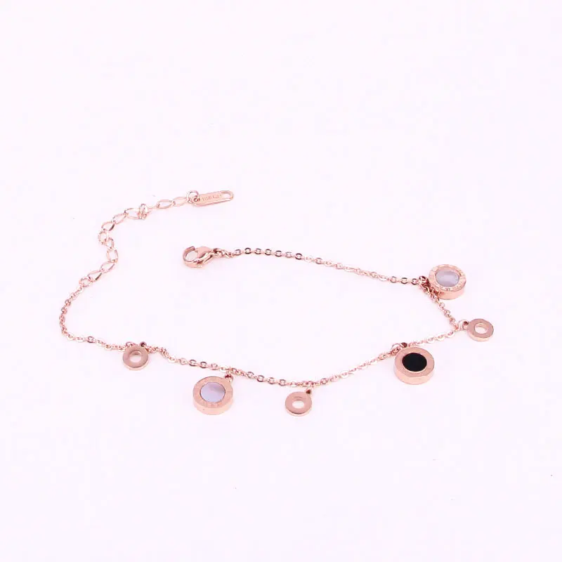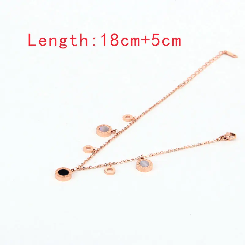 Изящный повесить три круга и три римские цифры черный и белый корпус ножной браслет для женщин из нержавеющей стали розовый браслет золотого цвета