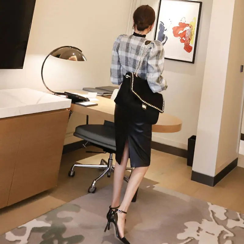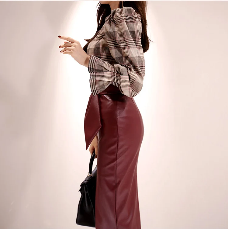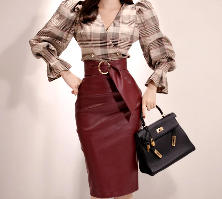 2021, сезон осень, высокая талия, из PU искусственной кожи, сапоги из PU искусственной кожи юбки для женщин элегантные пакет юбка-карандаш, подчеркивает бедра Офисные женские туфли повседневные миди юбки с поясом