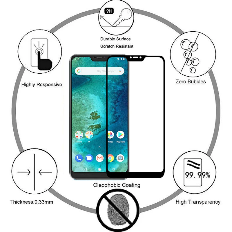 Защитное стекло 2 в 1, закаленное, с полным покрытием для экрана Xiaomi A2 Lite, Mi A2, Защитная пленка для объектива камеры, для xiaomi A3