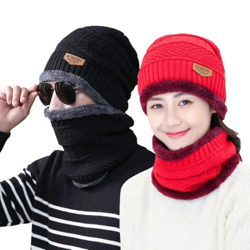 ICNWAY Всесезонная шерстяная шапка для мужчин и женщин, бархатная зимняя теплая вязаная шапка, шарф, оптовая продажа из двух предметов