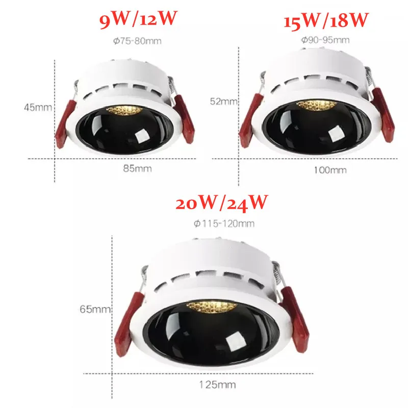 Встраиваемые антибликосветодиодный светодиодные светильники, 3 типа, 9 Вт12 Вт15 Вт18 Вт20 Вт24 Вт