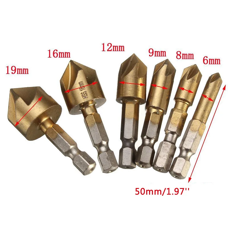 6 шт. 5 флейт HSS зенкер титановая фаска Концевая фреза сверла режущие инструменты